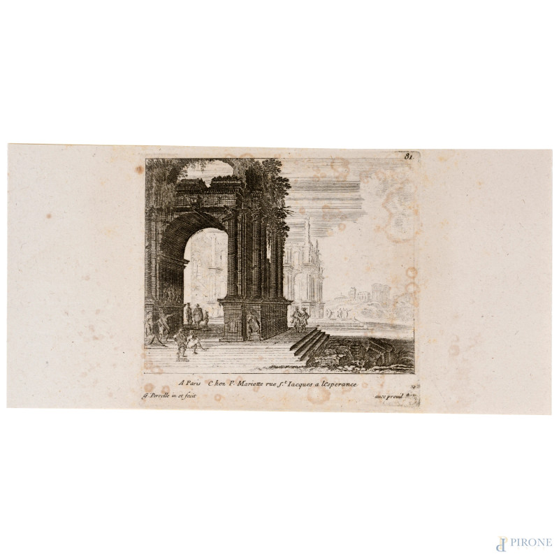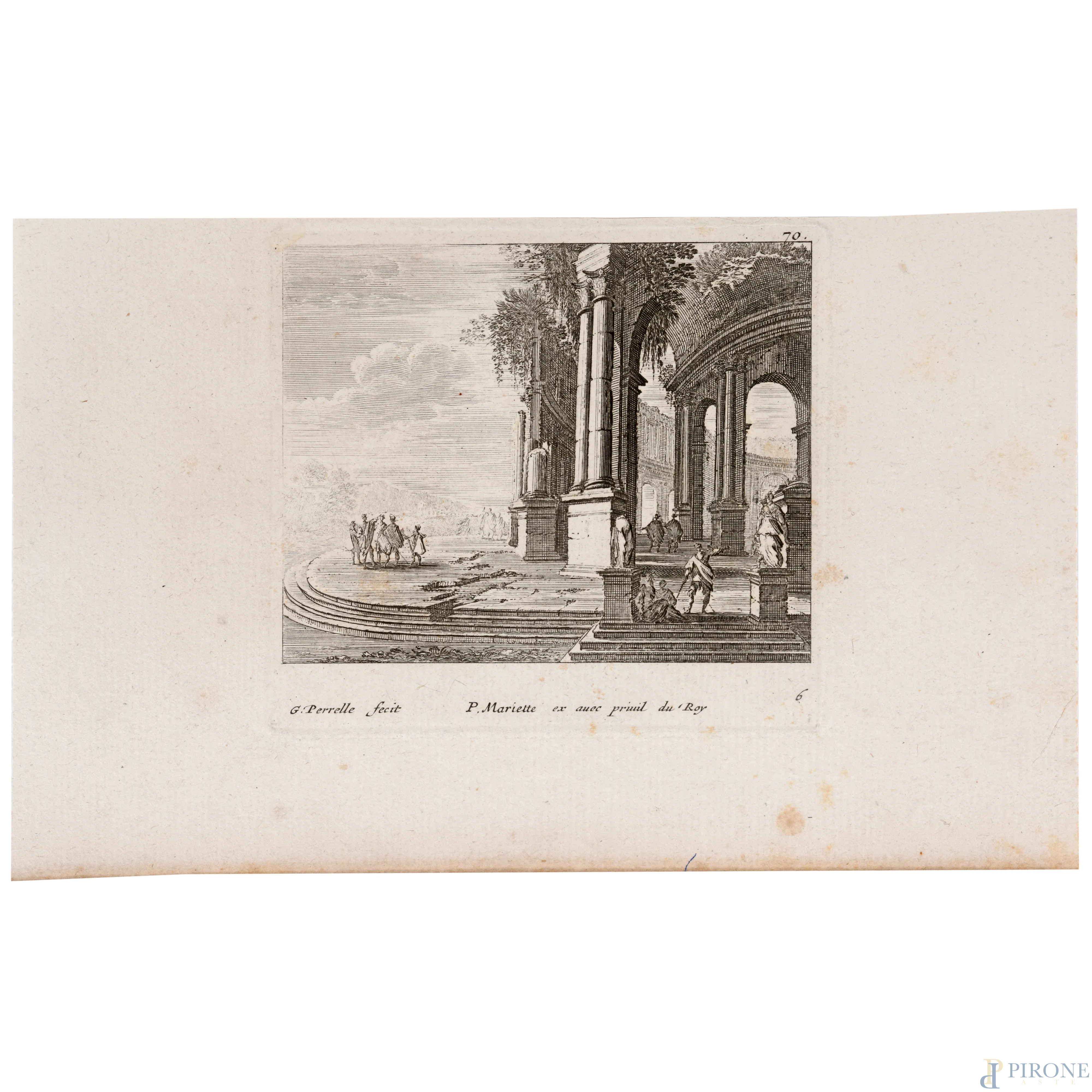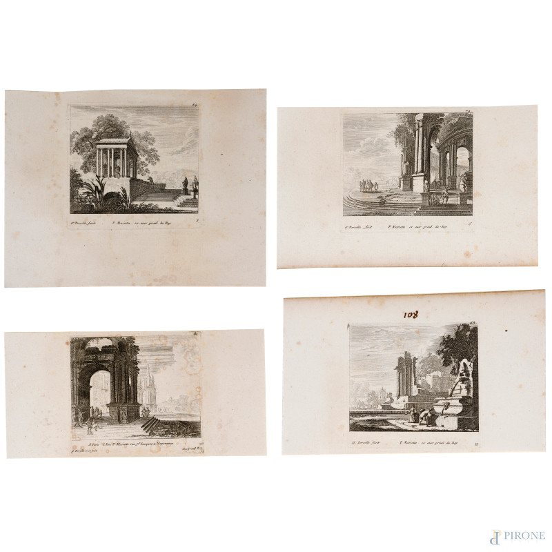 Gabriel Perelle, (1604 – 1677) Lotto di quattro acqueforti dalla serie "I paesaggi", foglio cm 16,5x21,5, (segni di usura,foxing)
