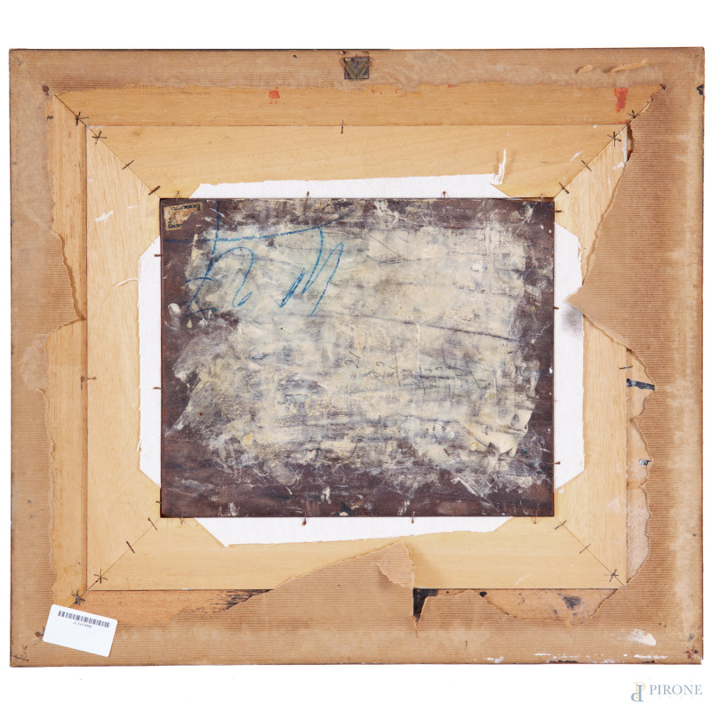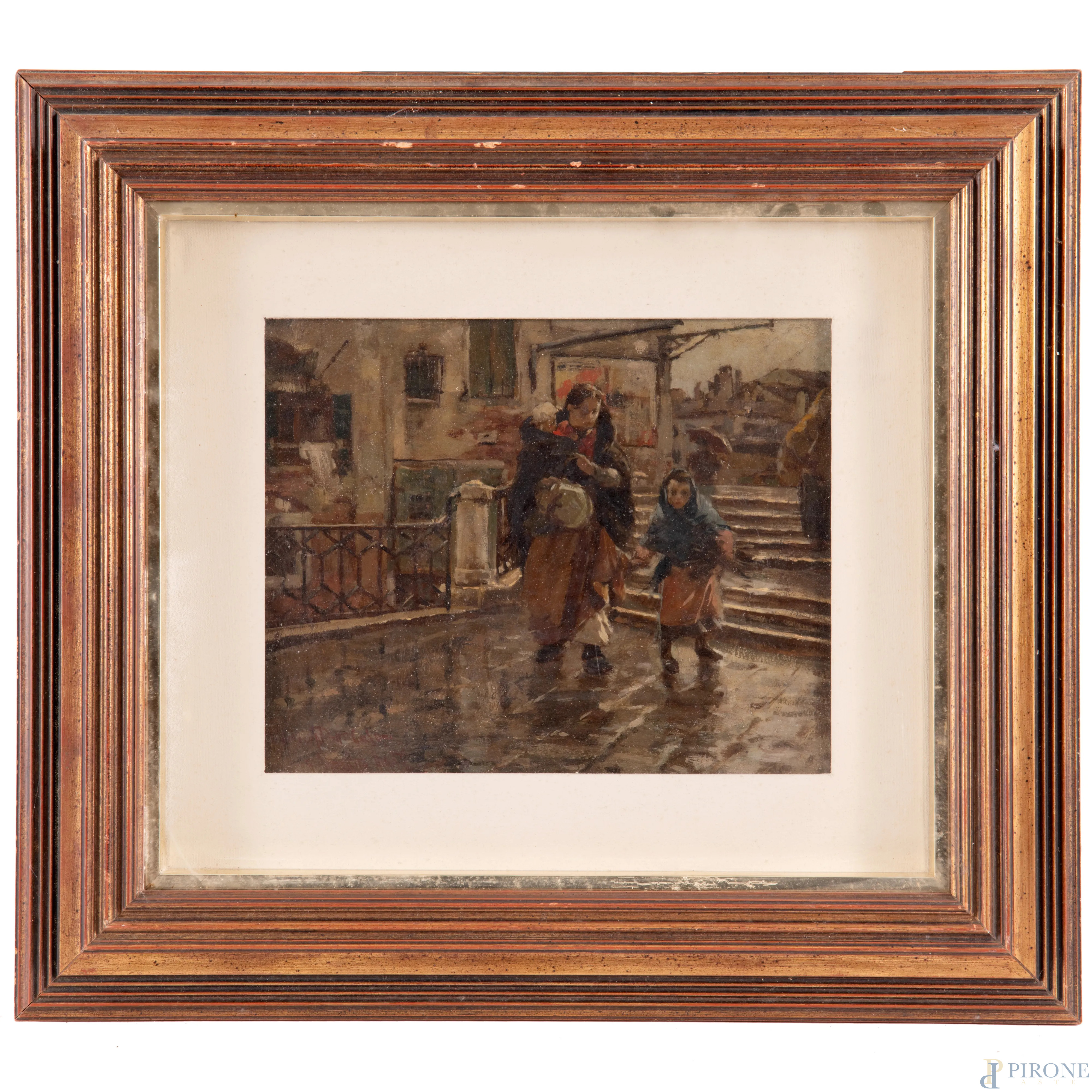 Giuseppe Vizzotto Alberti (1862-1931), Giornata di pioggia, olio su tavoletta, cm 27x33, firmato e datato in basso a sinistra, entro cornice