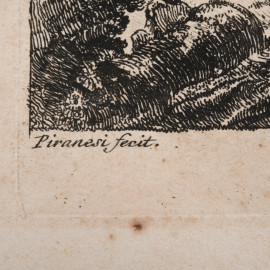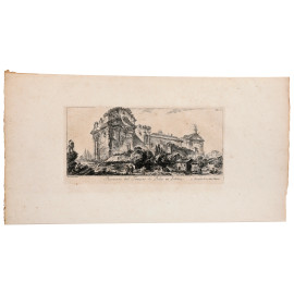 Giovanni Battista Piranesi (1720 - 1778), Rovescio del tempio di Polla in Istria, acquaforte I stato, foglio cm 29x46, (piegature, tracce di umidità, foxing, segni di usura)