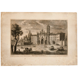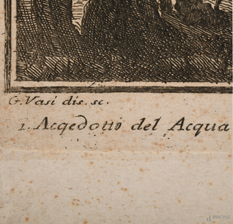Giuseppe Vasi (1710 – 1782) Acquaforte raffigurante la Basilica di San Croce in Gerusalemme, foglio cm 30x43, (segni di usura, strappi, foxing, restauri)