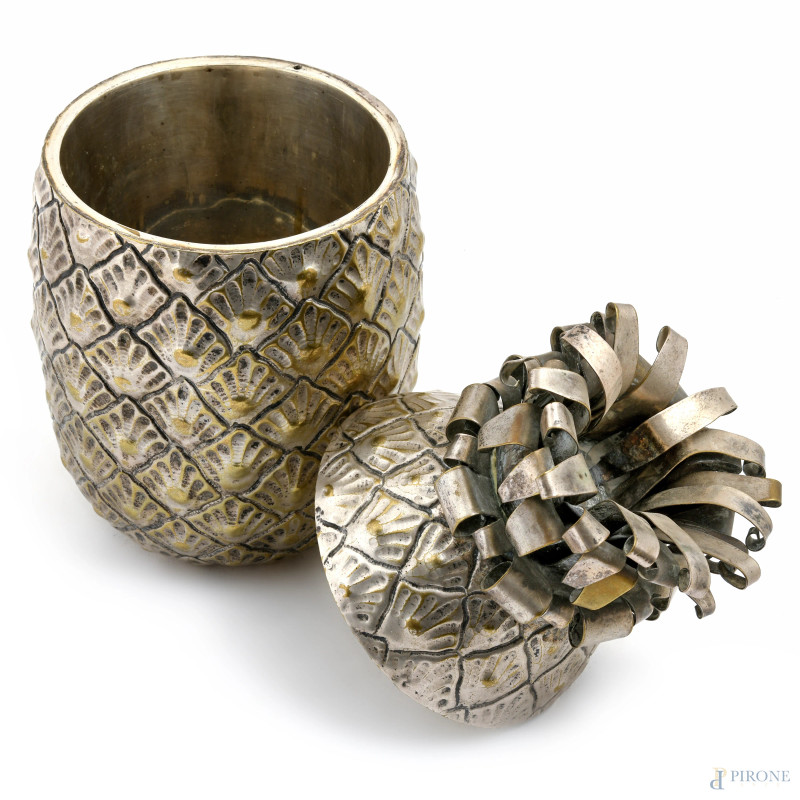 Glacette a guisa di ananas in metallo argentato, XX secolo, altezza cm 26,5, (Segni di usura, graffi)