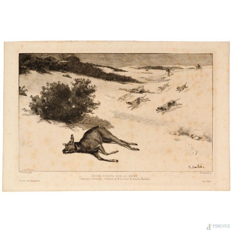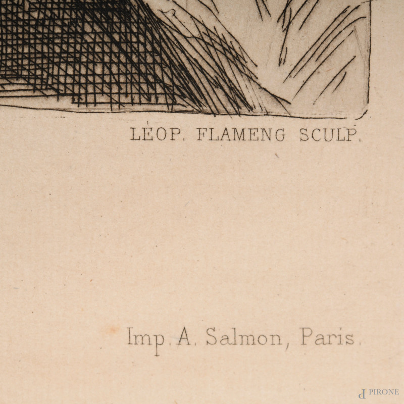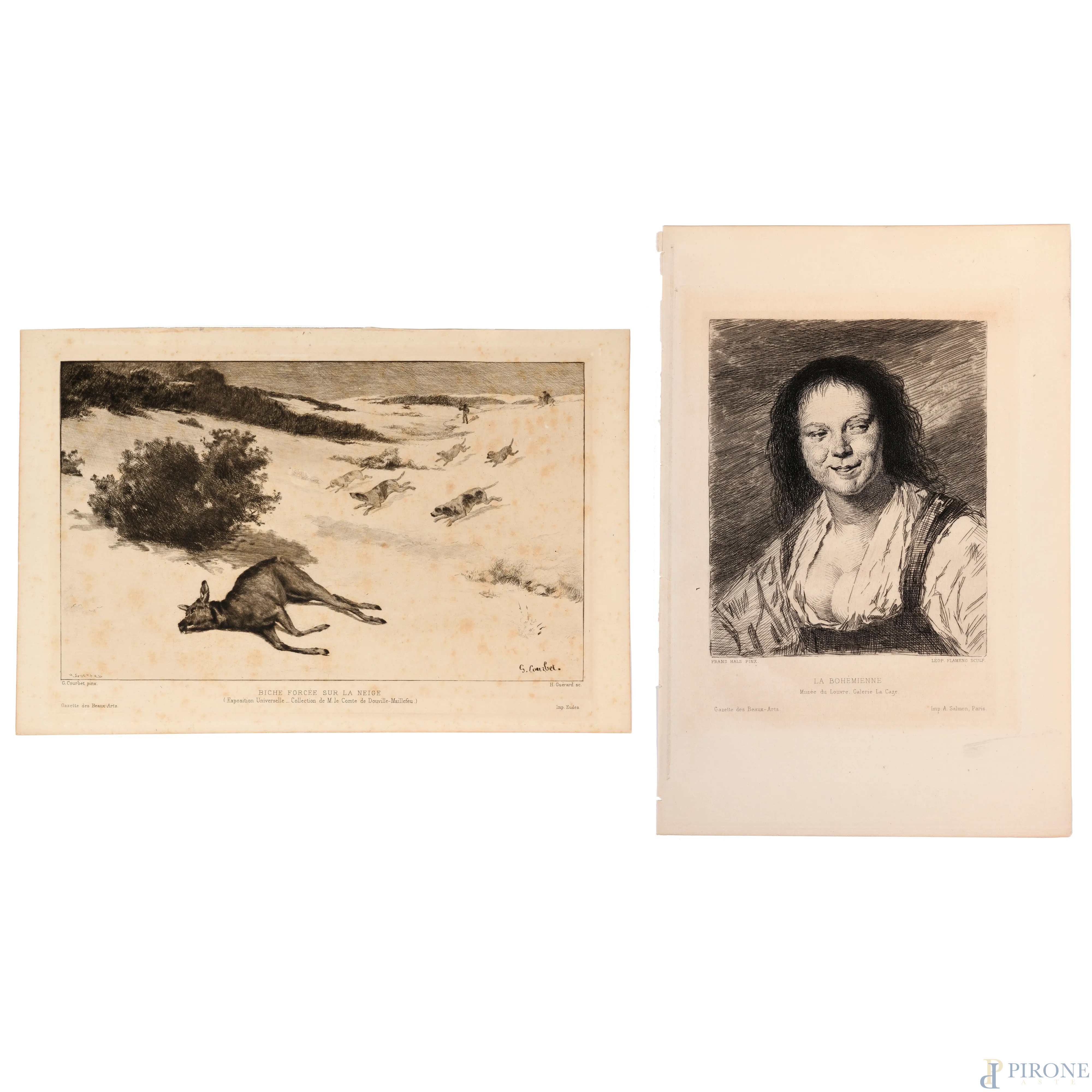 Guerard Francois & Leop Flameng, Lotto di due acqueforti della serie "Gazette de Beaux-Arts", 1860 circa, misure massime foglio cm 27x18,5, (segni di usura, foxing)