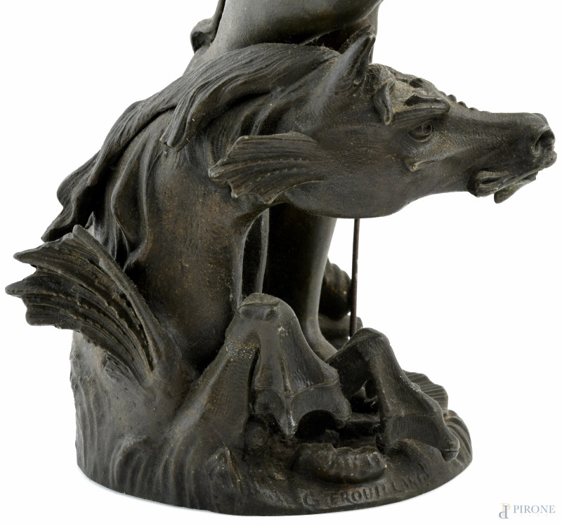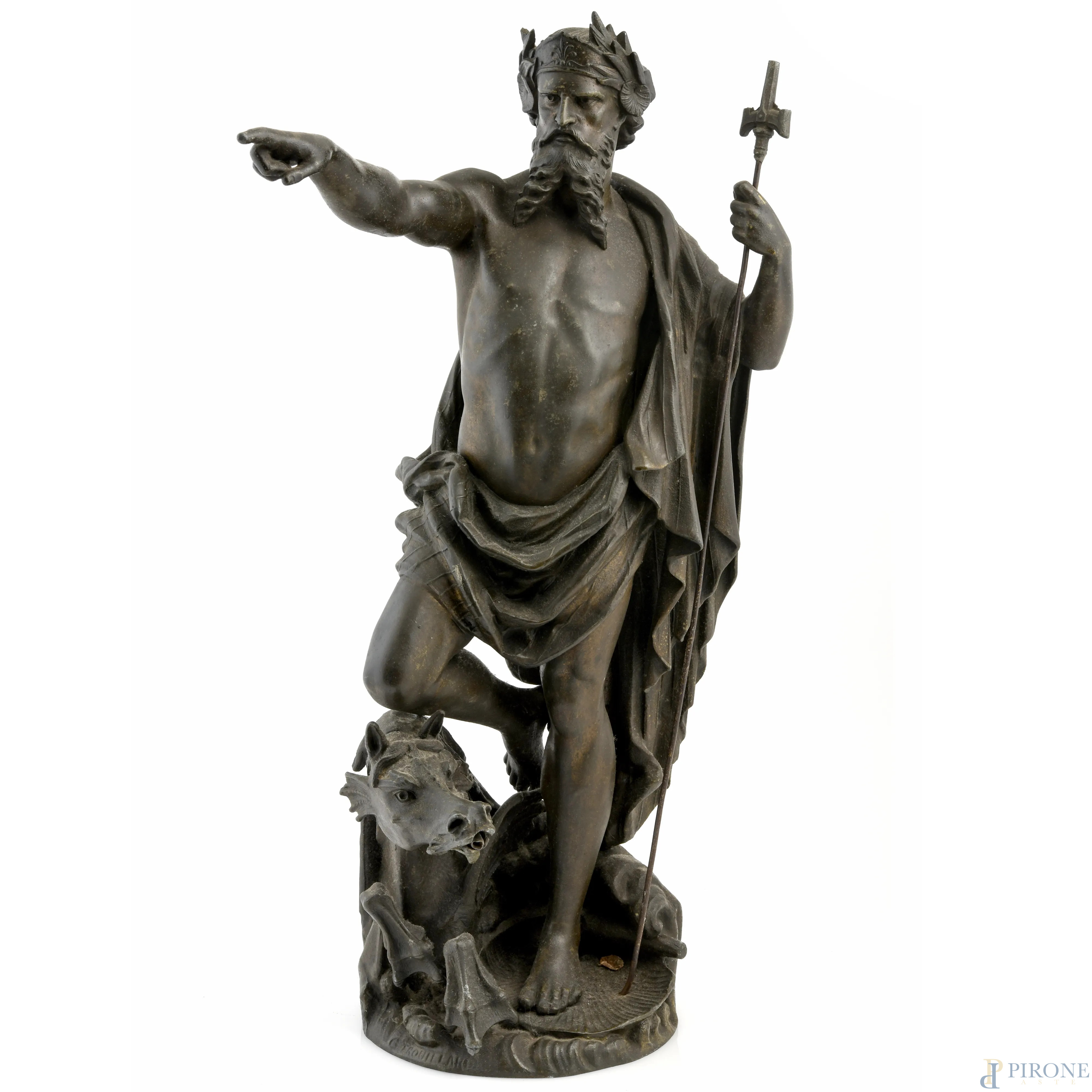 Gustave Trouillard (XIX-XX secolo), Nettuno, scultura in bronzo, altezza cm 65, firmato alla base "Trouillard", (difetti, segni di usura)
