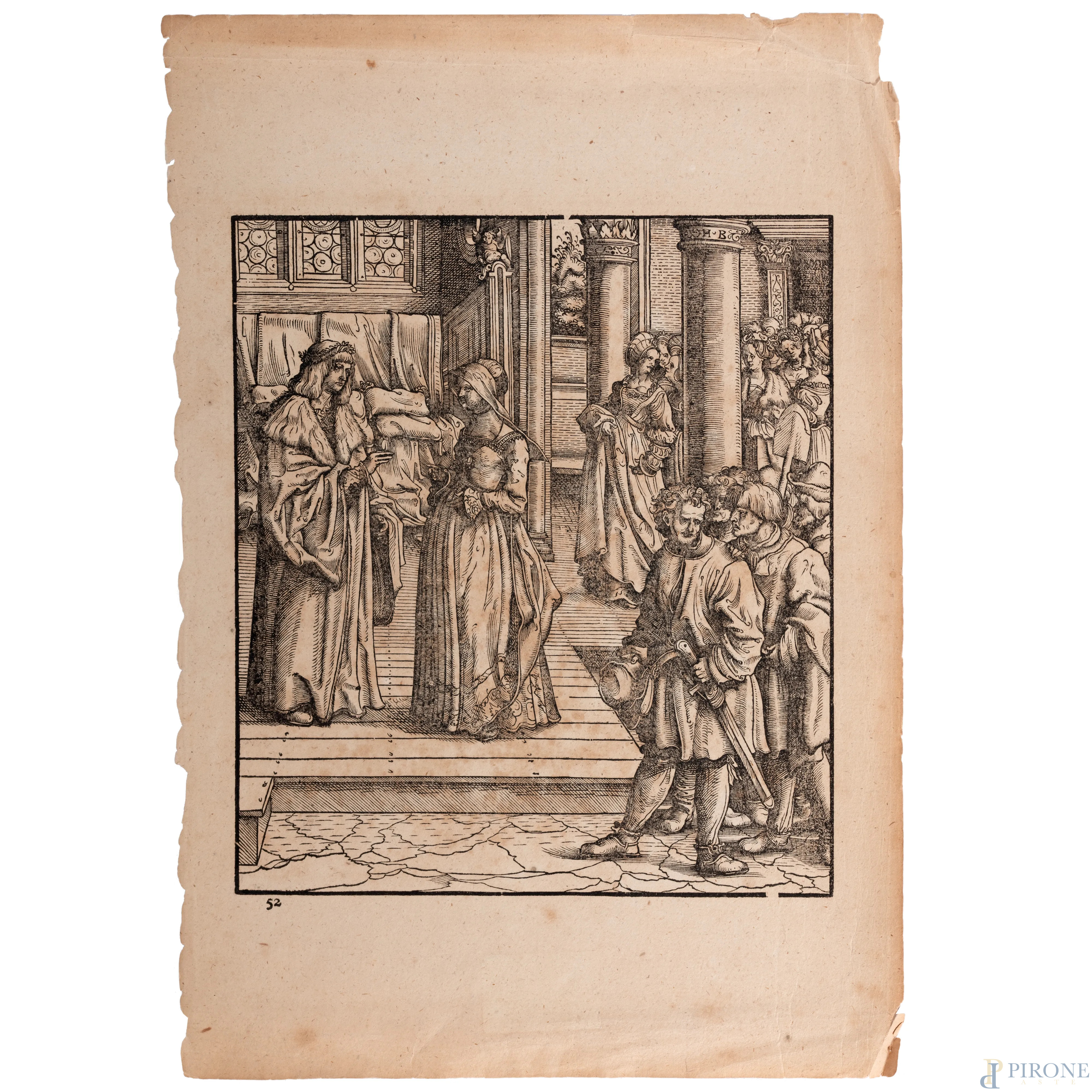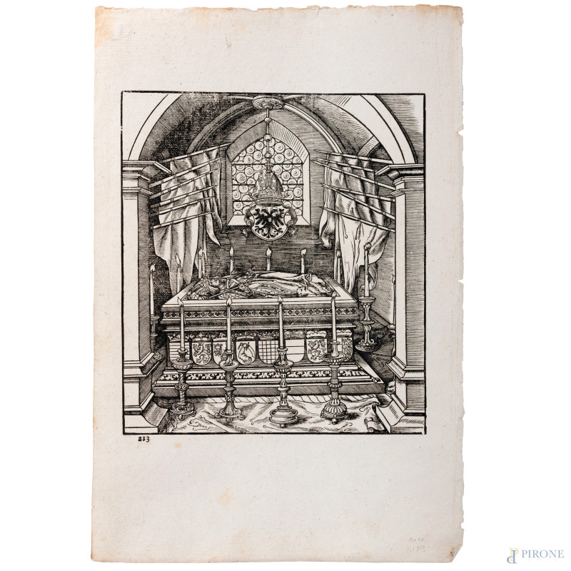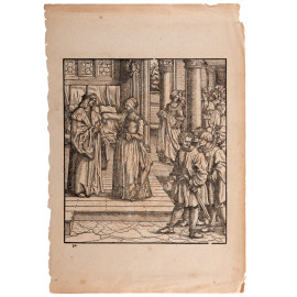 Hans Burgkmair (1473-1531), Coppia Xilografie dalla serie "I trionfi di Massimiliano I" in prima tiratura, foglio cm 34x23, (tracce di umidità, segni di usura, strappi ai margini)