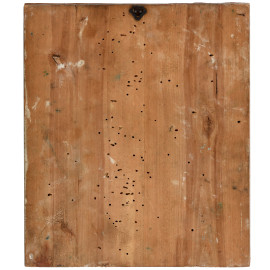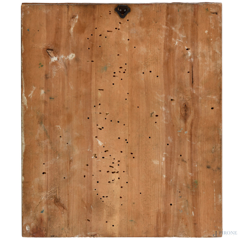 Icona dipinta e incisa con storie mariane e cristologiche, XIX secolo, cm 30,5x26,5, (scalfiture, cadute di colore, fori di tarlo)