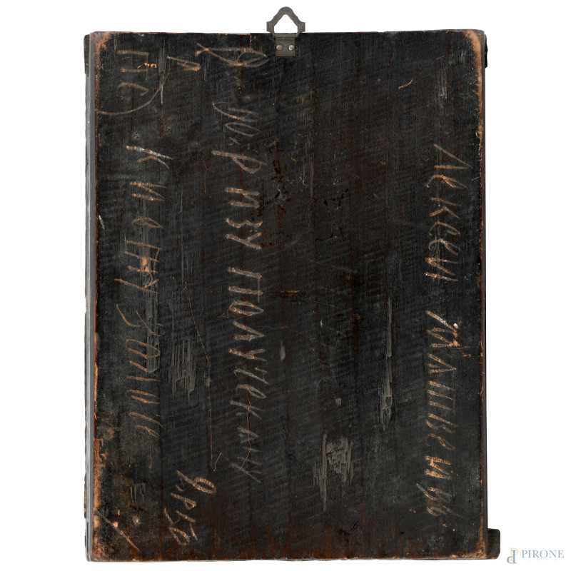 Icona raffigurante Madonna con Bambino, XIX secolo, cm 327x20 (scalfiture, cadute di colore)