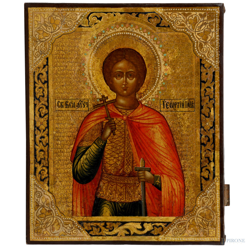 Icona raffigurante San Giorgio, XIX secolo, cm 26,5x22, (scalfiture, lievi cadute di colore)