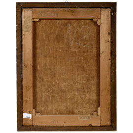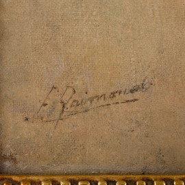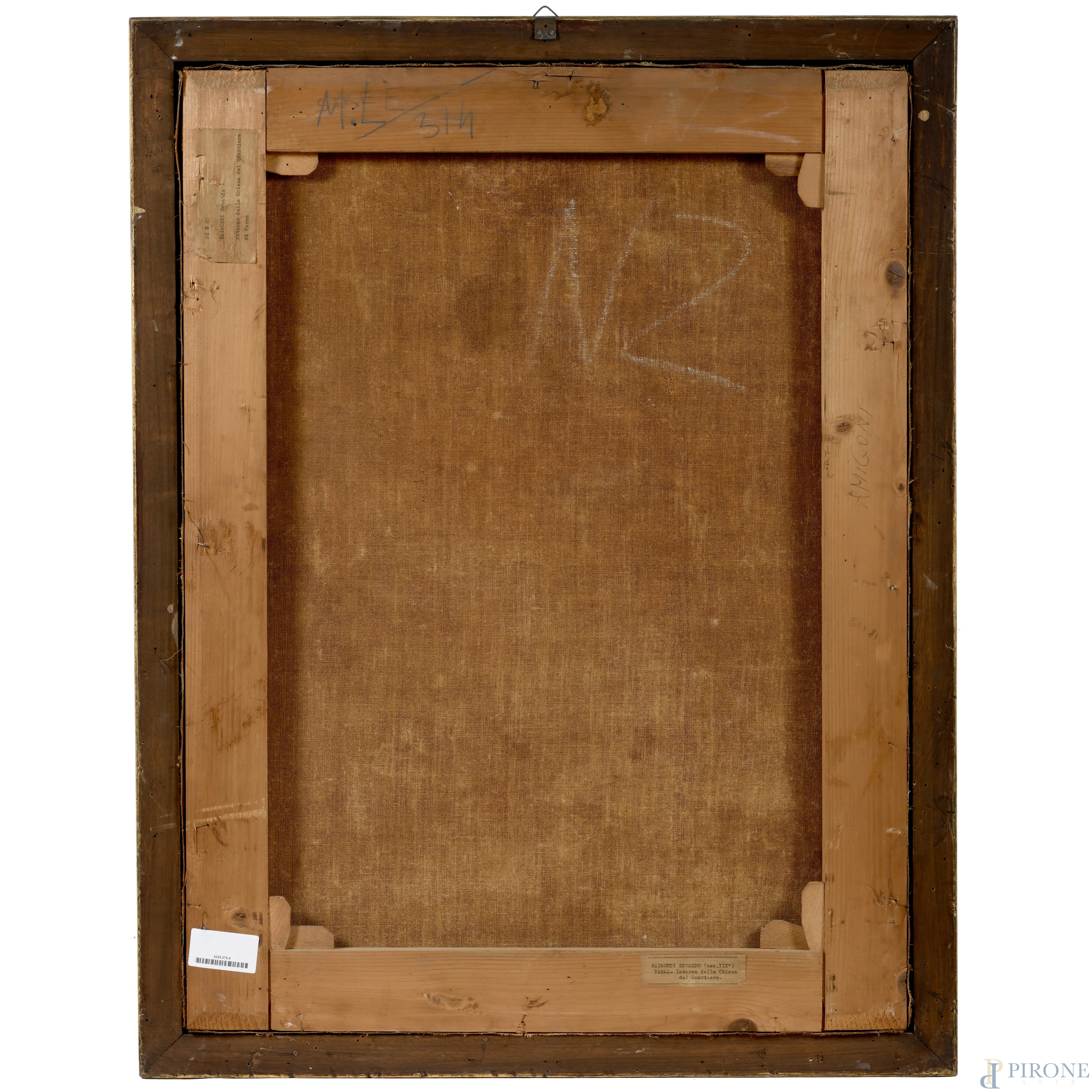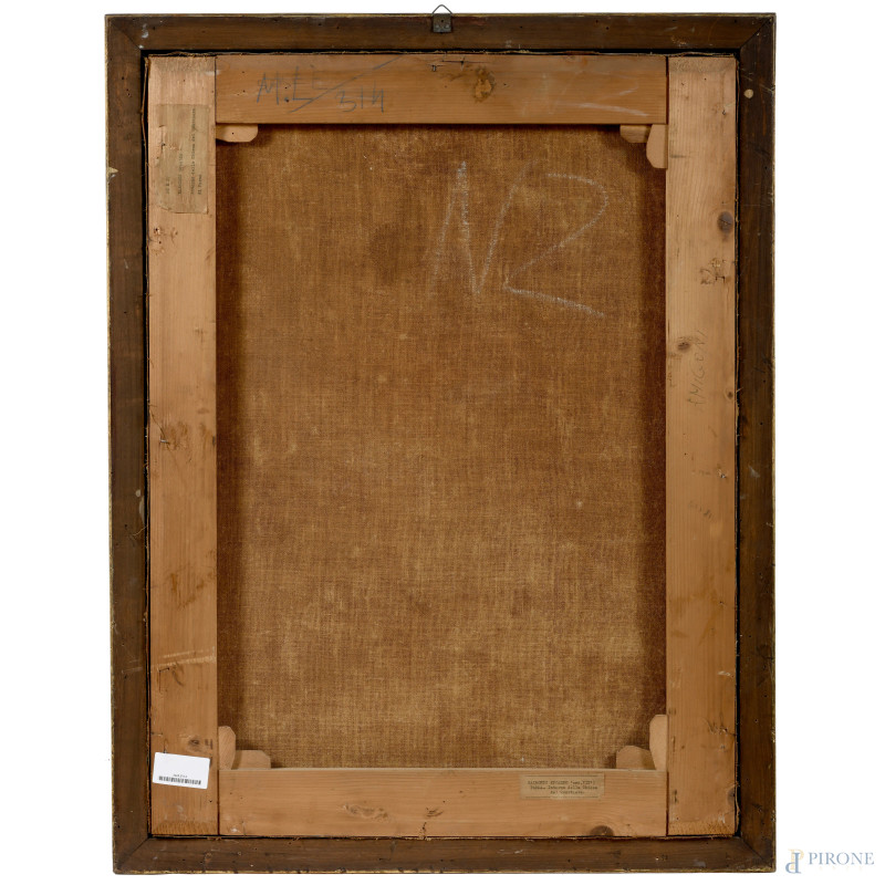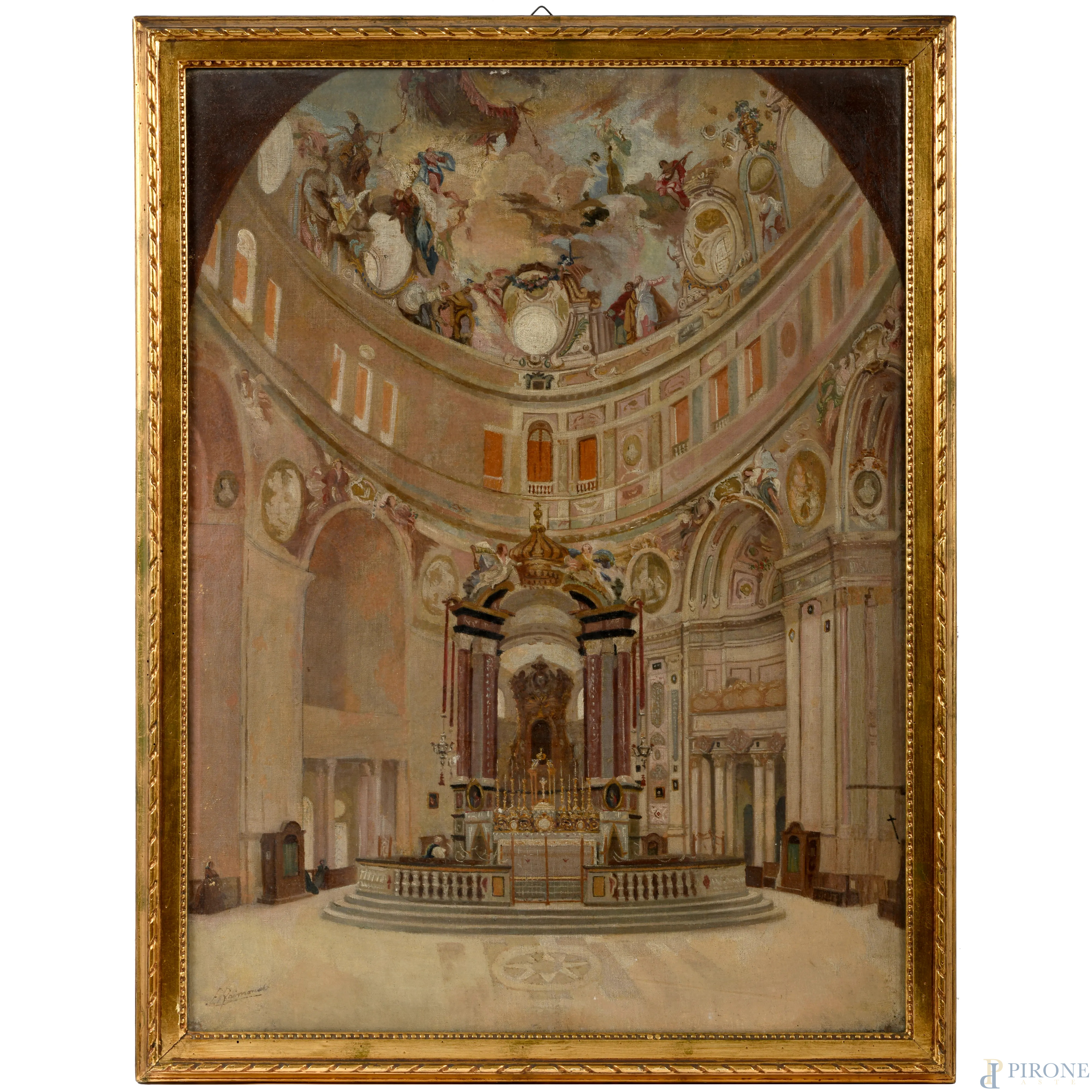 Interno di chiesa del quartiere di Parma, XIX-XX secolo, olio su tela, cm 80x60, firmato in basso a sinistra, entro cornice