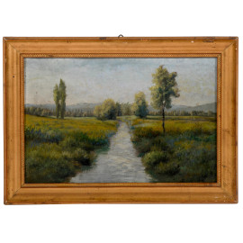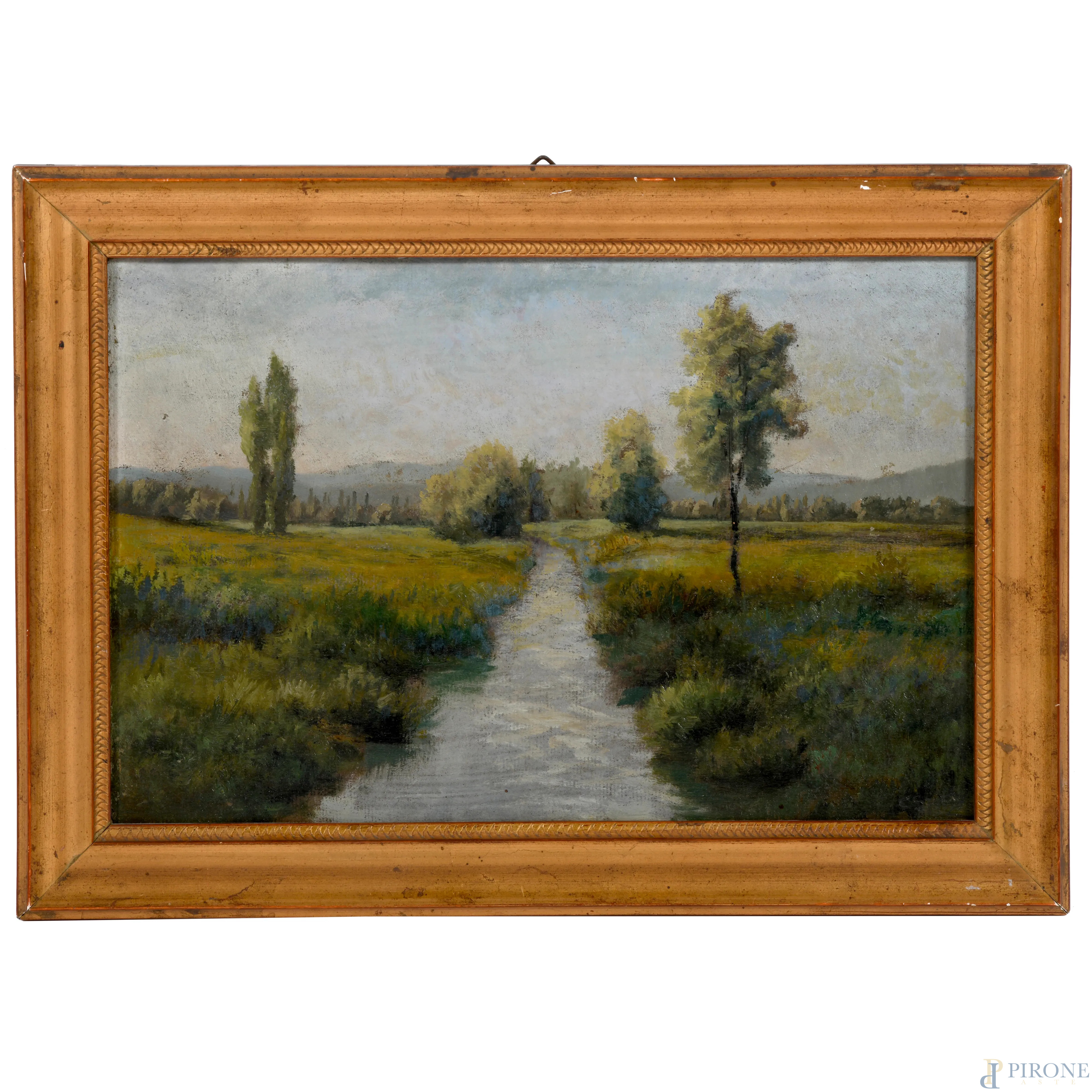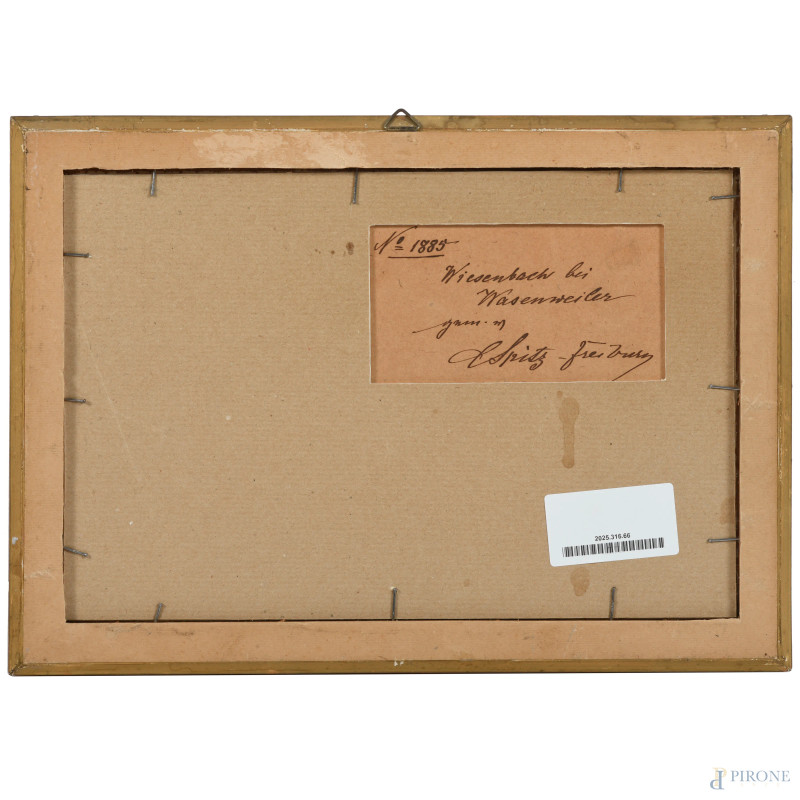 Karl Spitz (1853-1937), Paesaggio, olio su cartone telato, cm 19x28, firmato in basso a destra, entro cornice