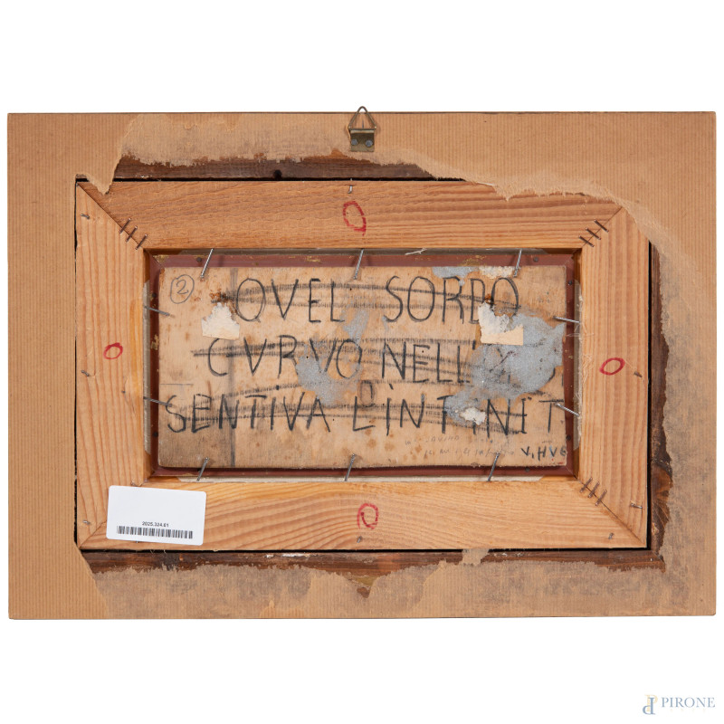 La carrozza, XIX secolo, olio su tavoletta, cm 12x24, firmato in basso a sinistra, entro cornice