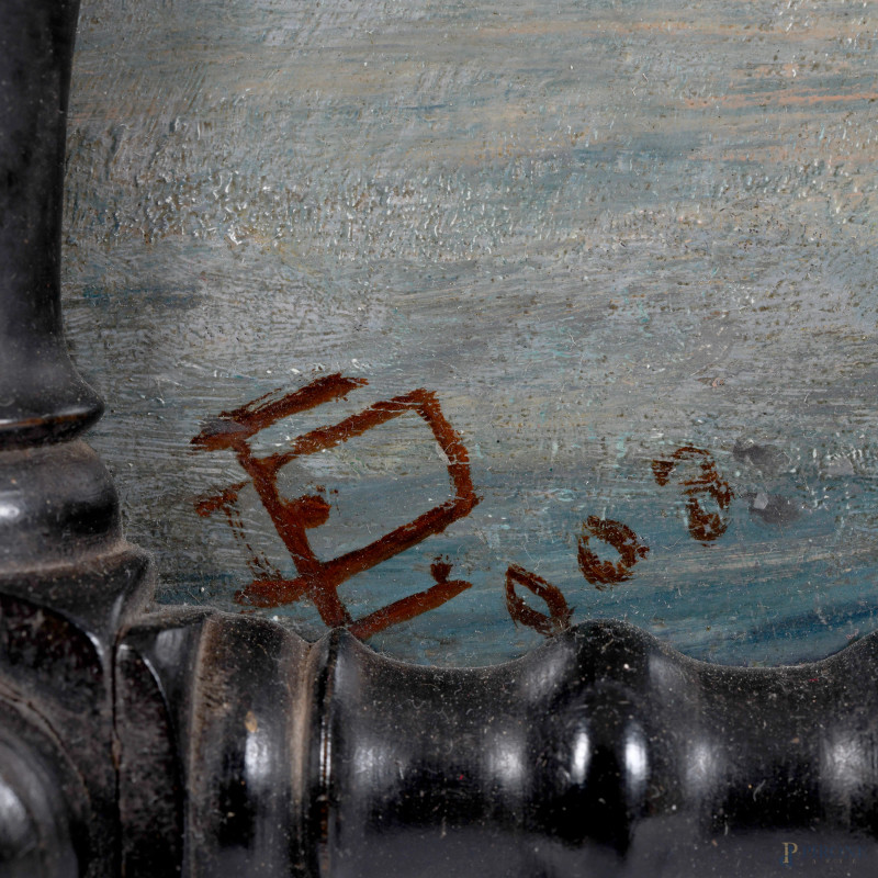 Laguna di Venezia, inizio del XX secolo, olio su tavoletta, cm 20x39,5, siglato in basso a sinistra, entro cornice