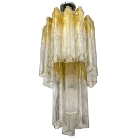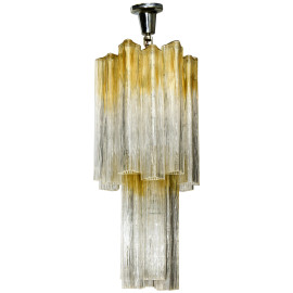 Lampadario in stile Triedro in vetro di Murano a due registri, XX secolo, cm , (rotture, felature, difetti)