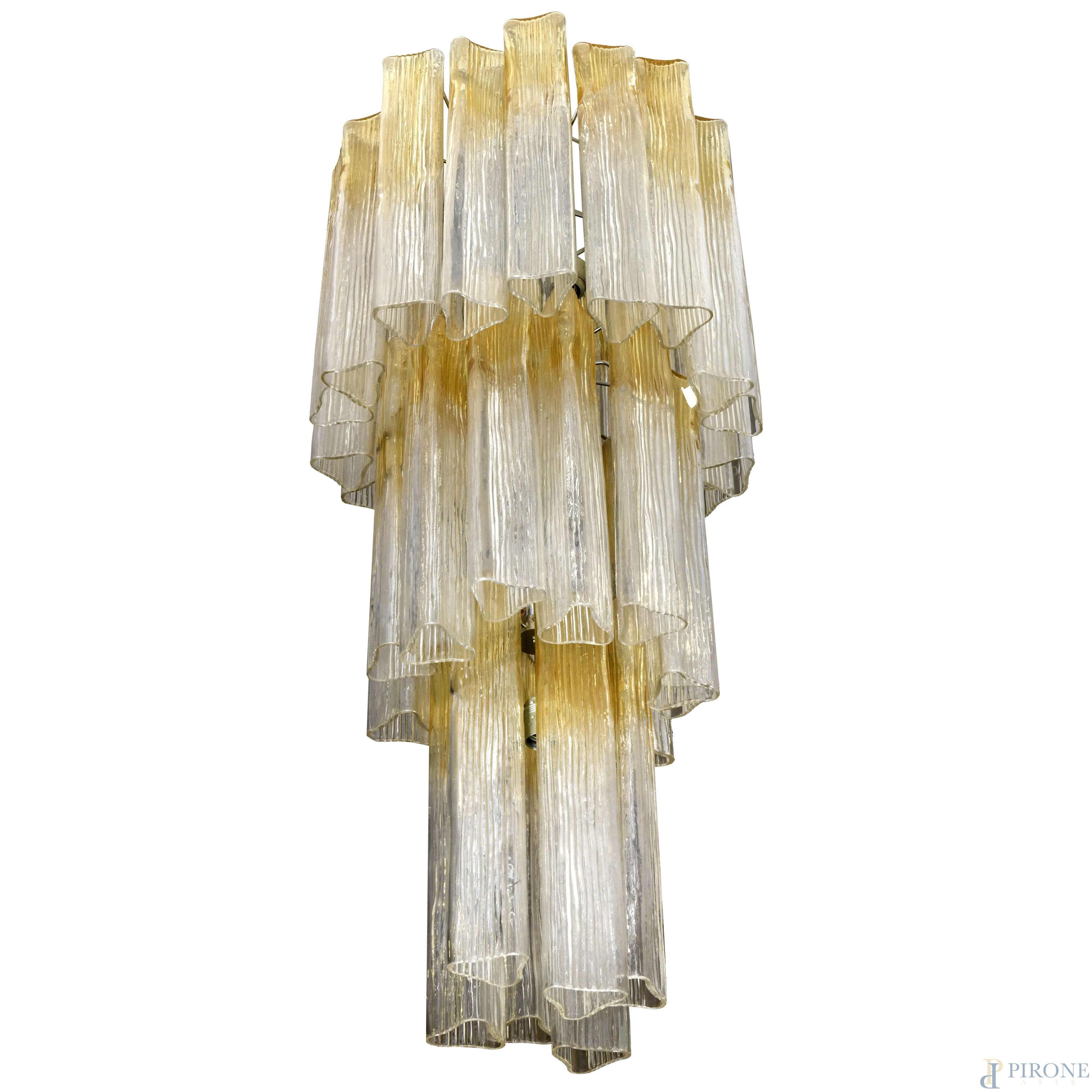 Lampadario in stile Triedro in vetro di Murano a tre registri, XX secolo, cm , (rotture, felature, difetti)