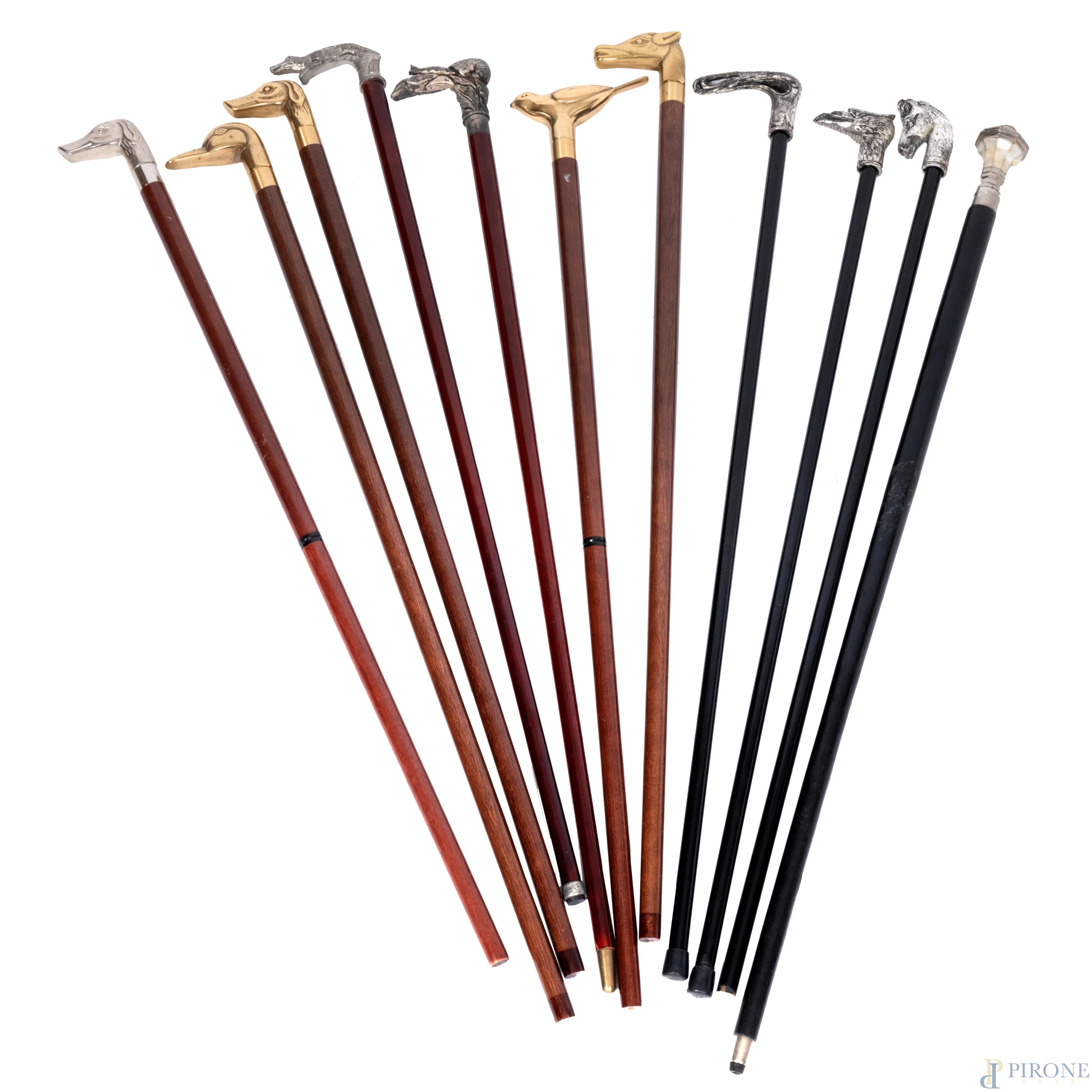 Lotto di 11 bastoni da passeggio in vari materiali, XX secolo, (segni di usura)