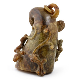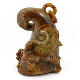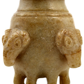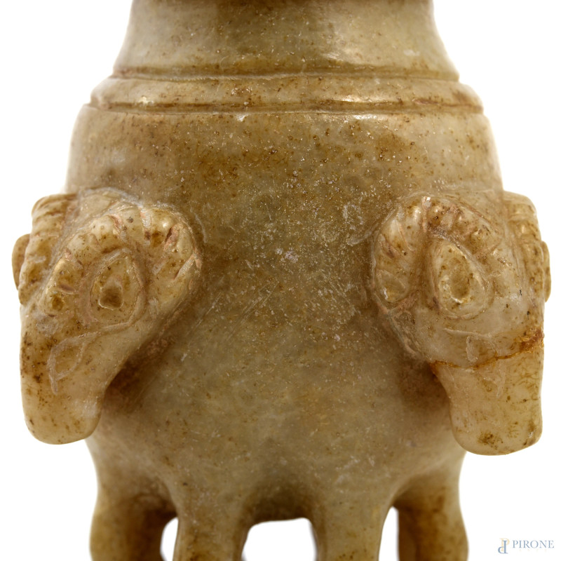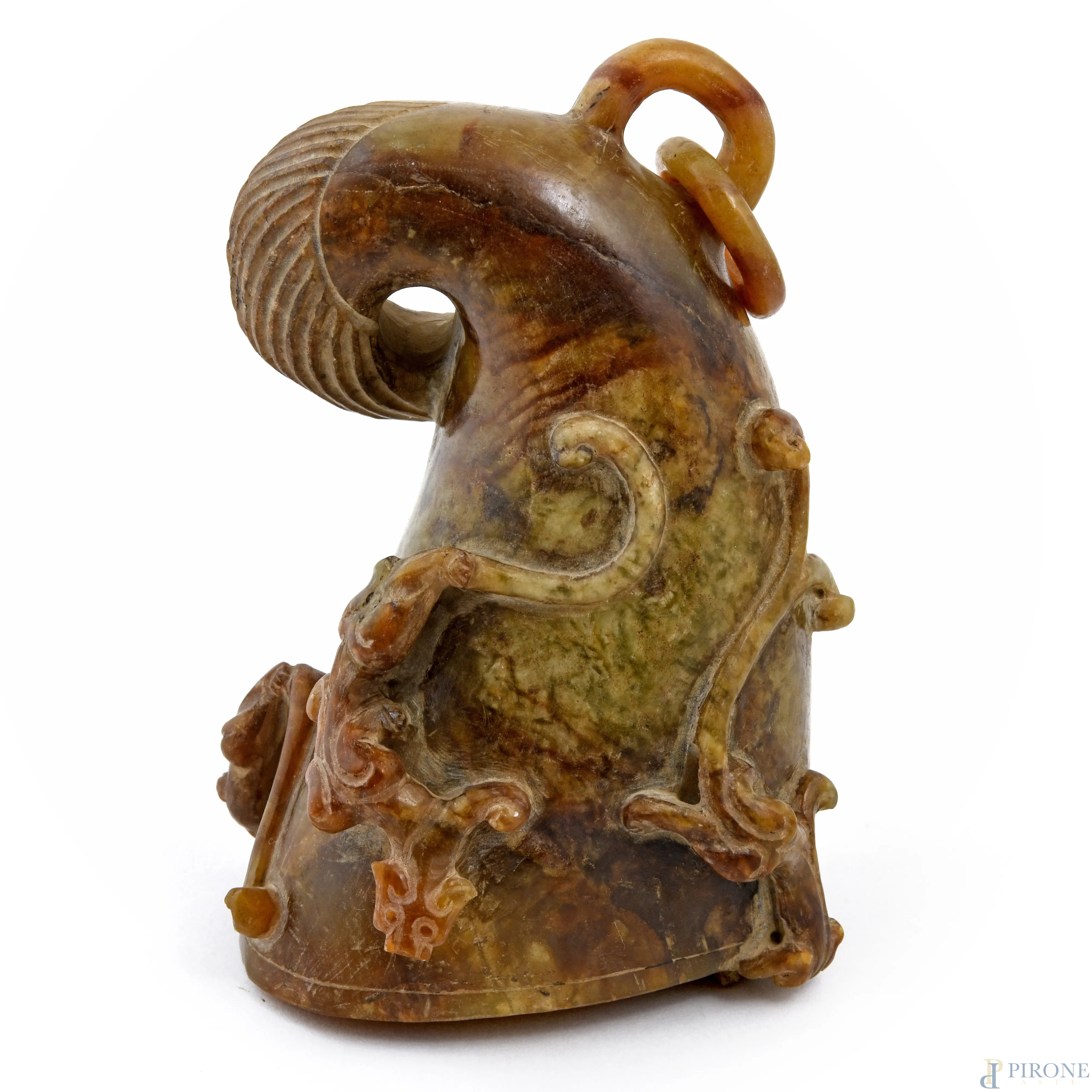 Lotto di corno e alzata in pietra saponaria, XX secolo, altezza massima cm 12, (scalfiture, rotture, restauri)