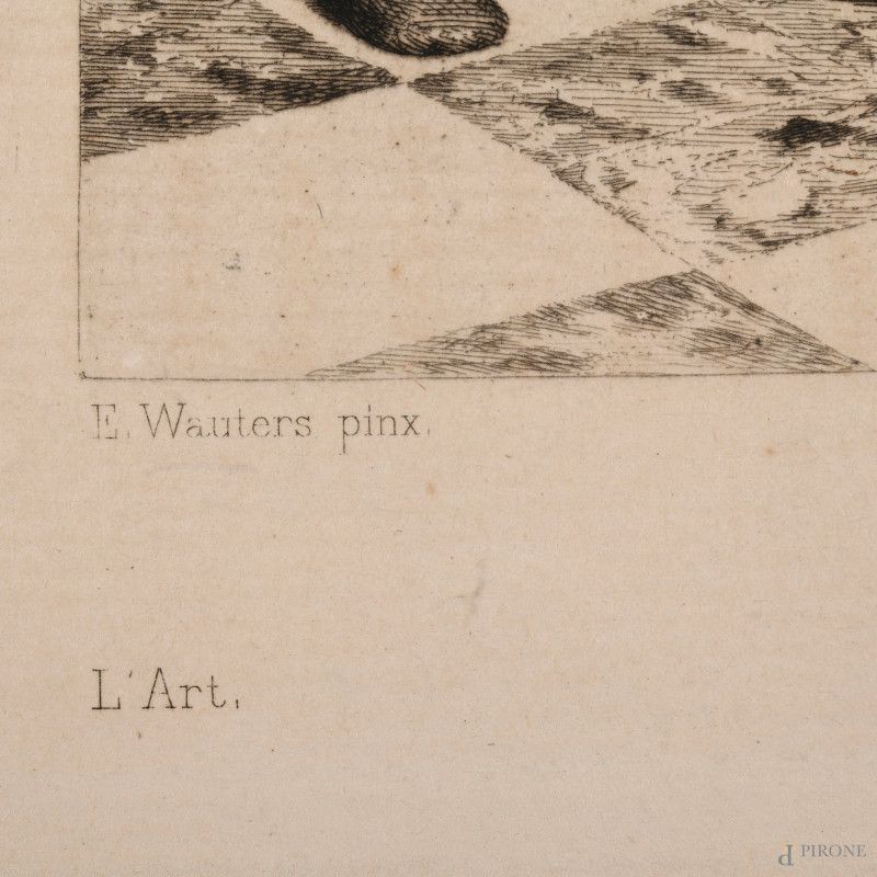 Lotto di due acqueforti da "L'Art", 1860 circa, foglio cm 43x29,5, (segni di usura, tracce di umidità)