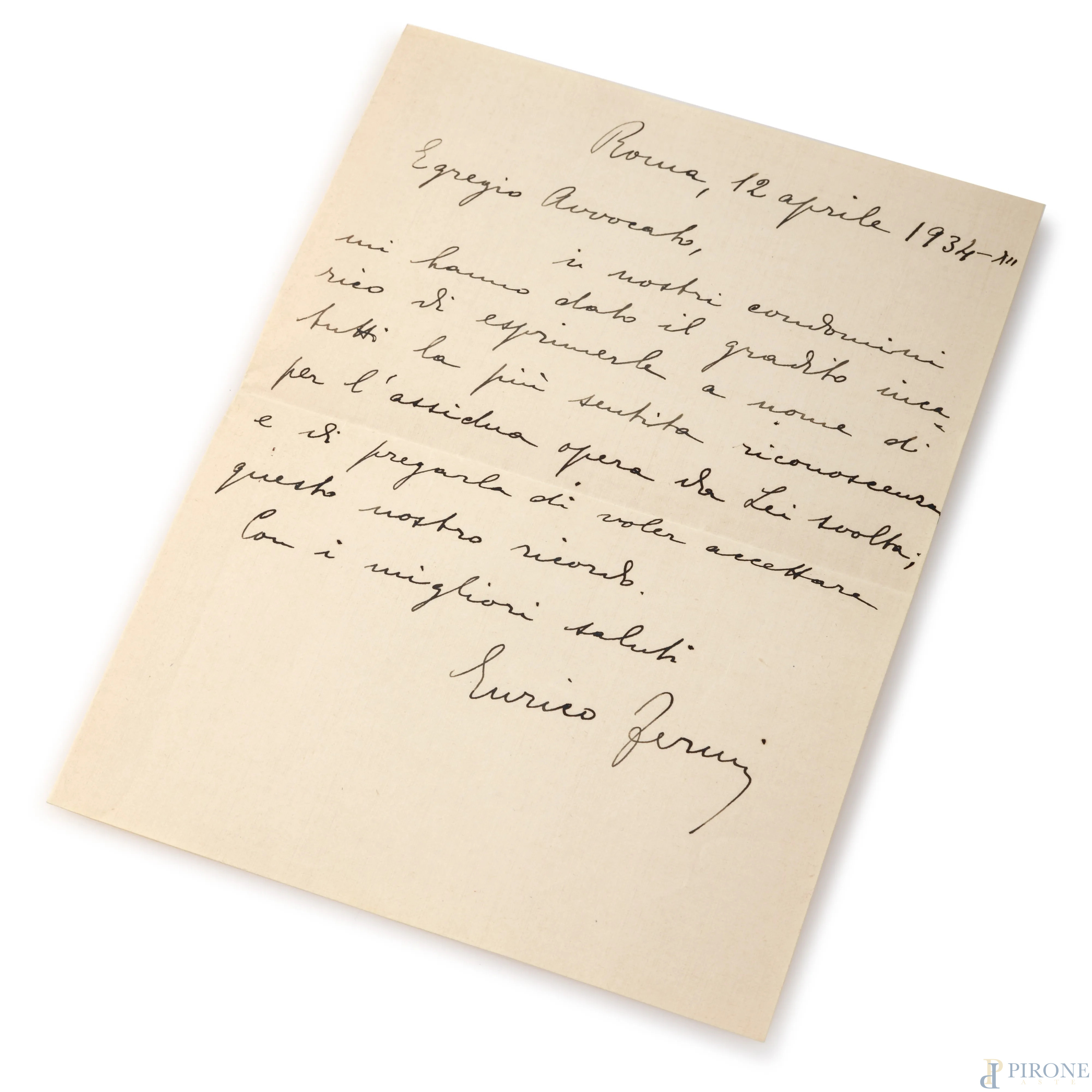 Lotto di due lettere autografe di Enrico Fermi, rispettivamente datate 1928 e 1934