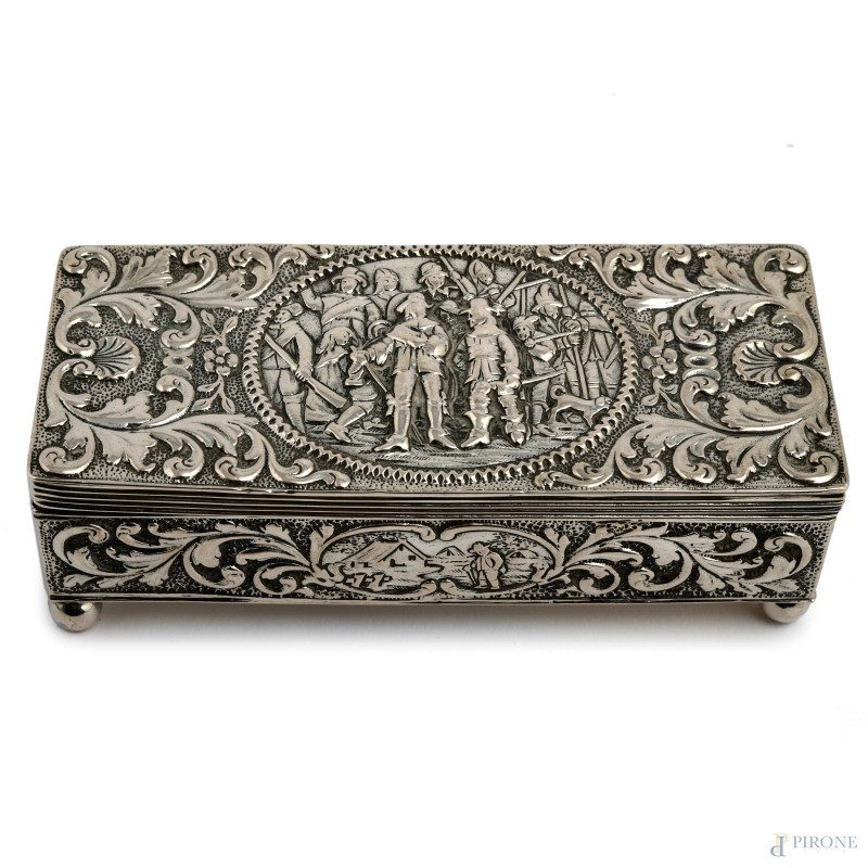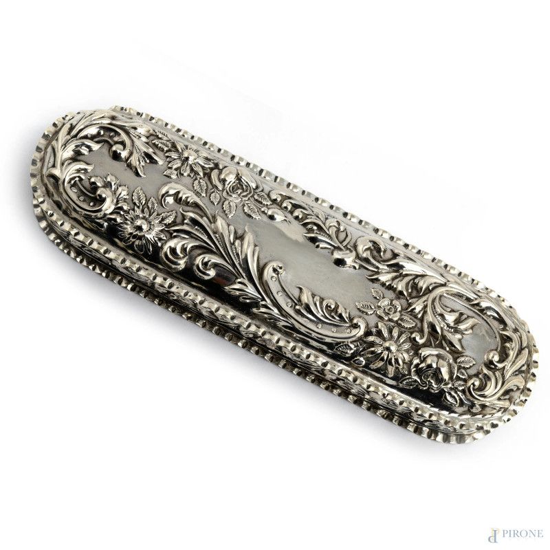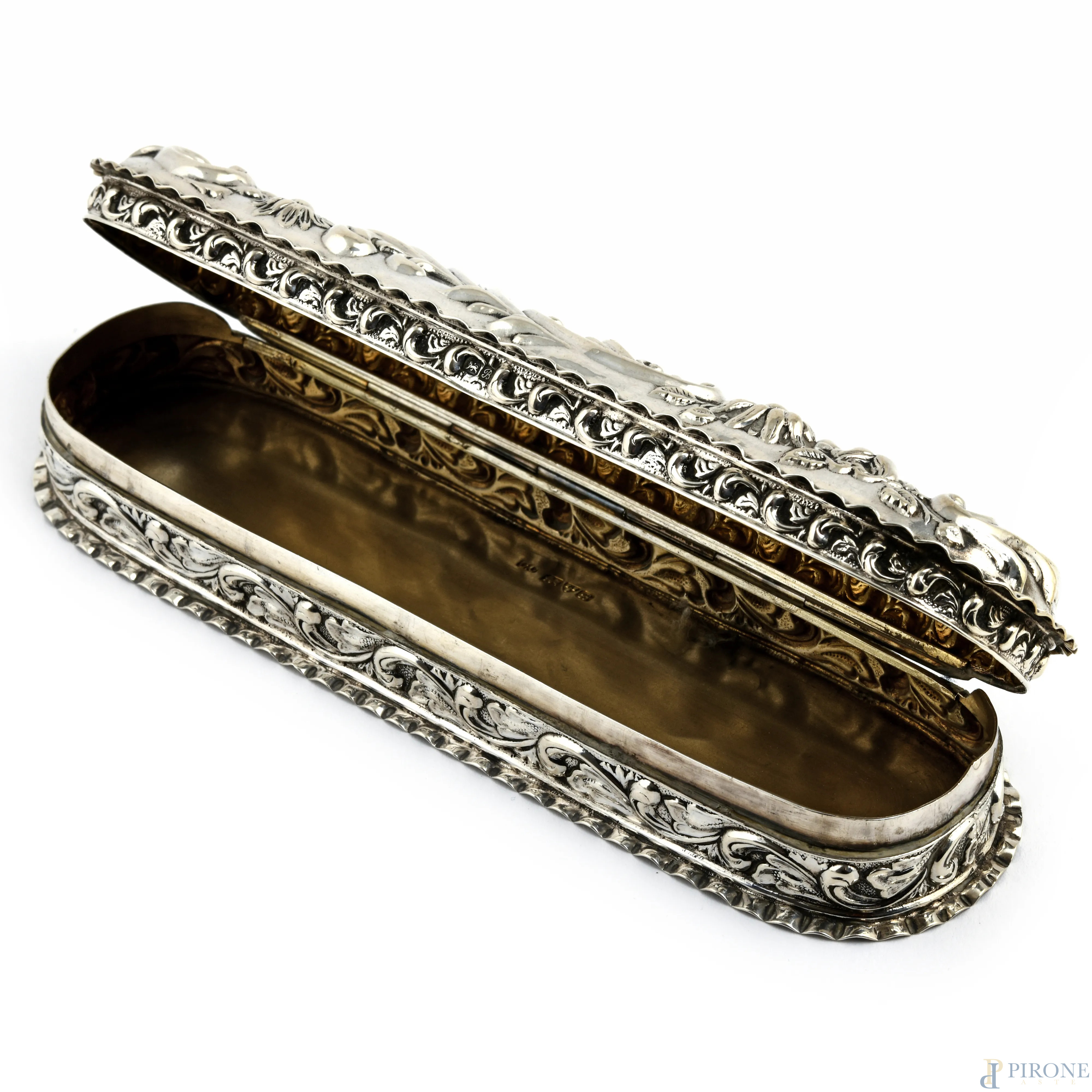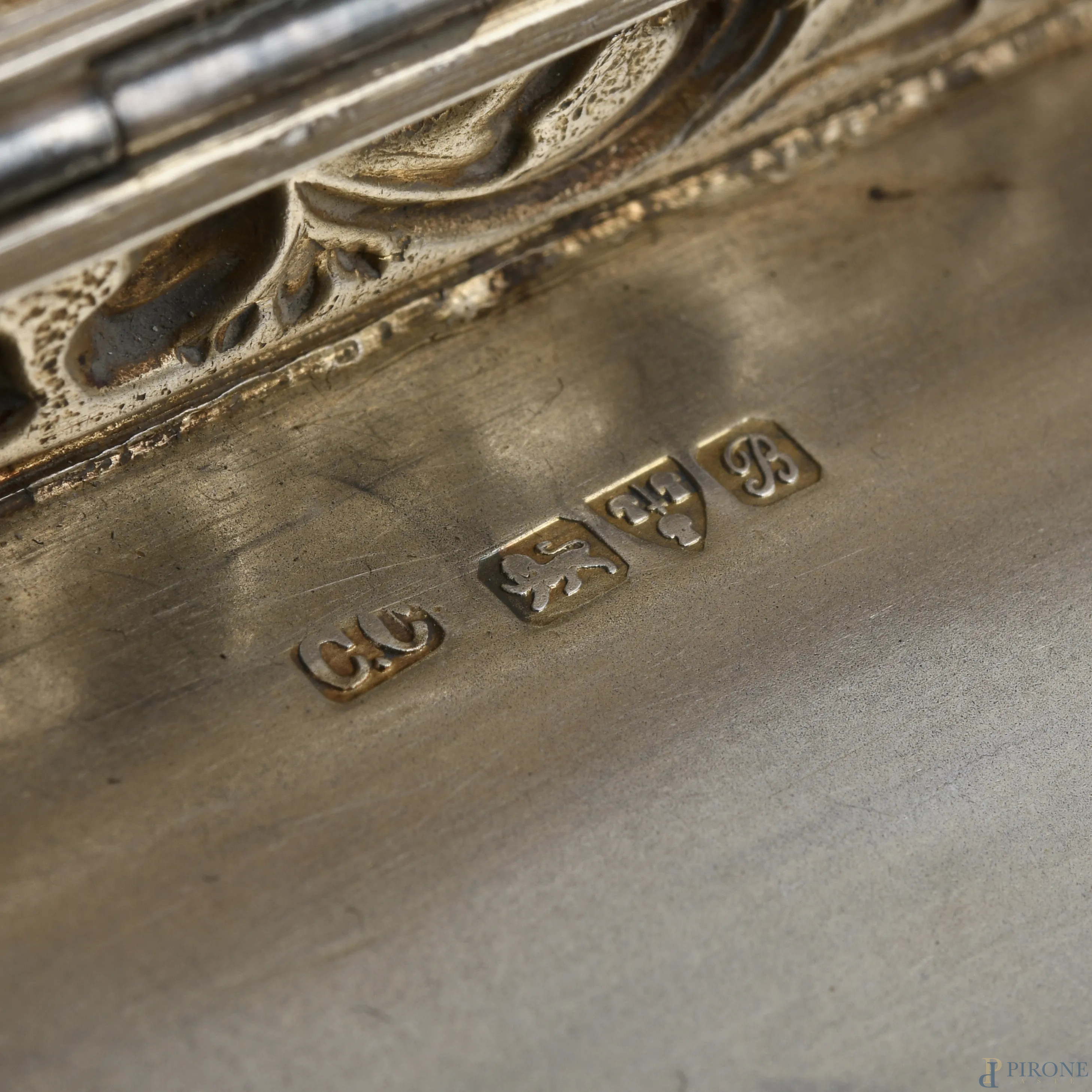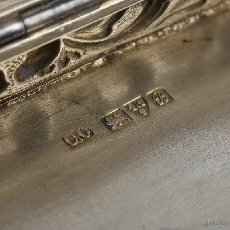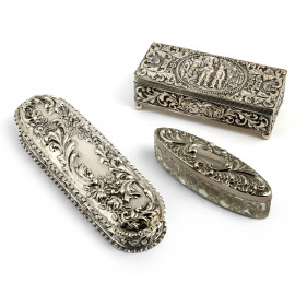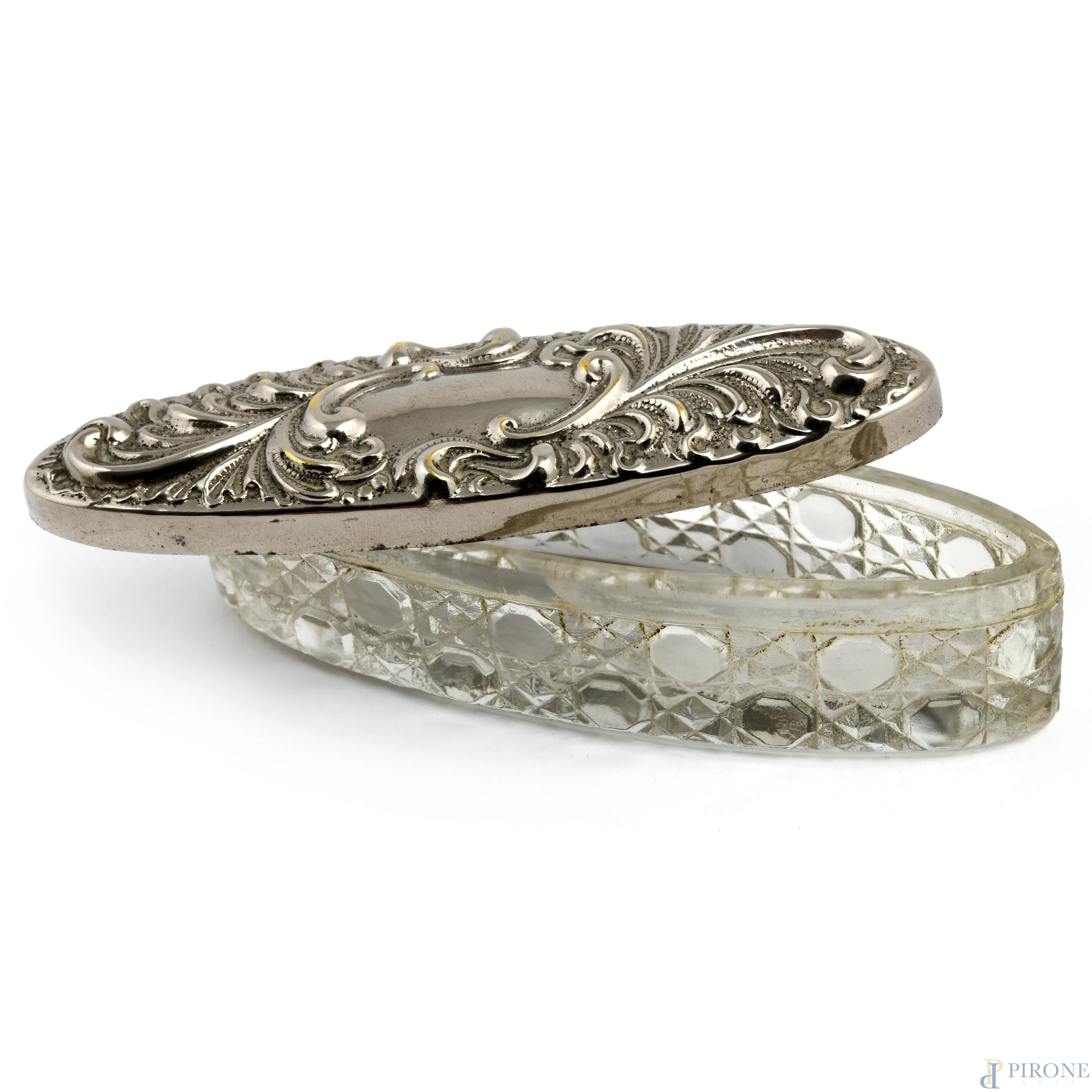 Lotto di tre scatoline in argento e cristallo, misure massime cm 4x17x5, peso gr 307