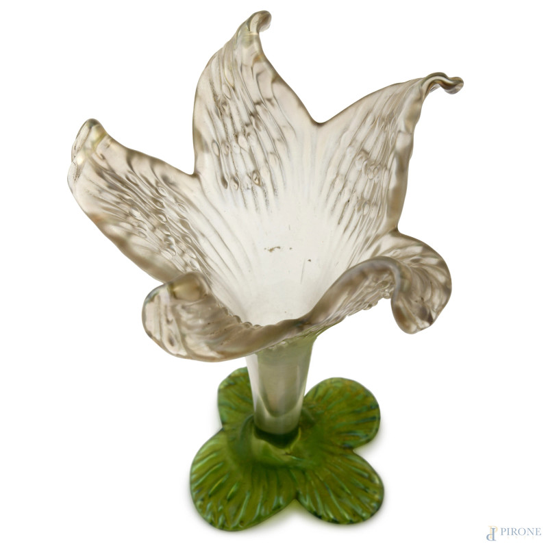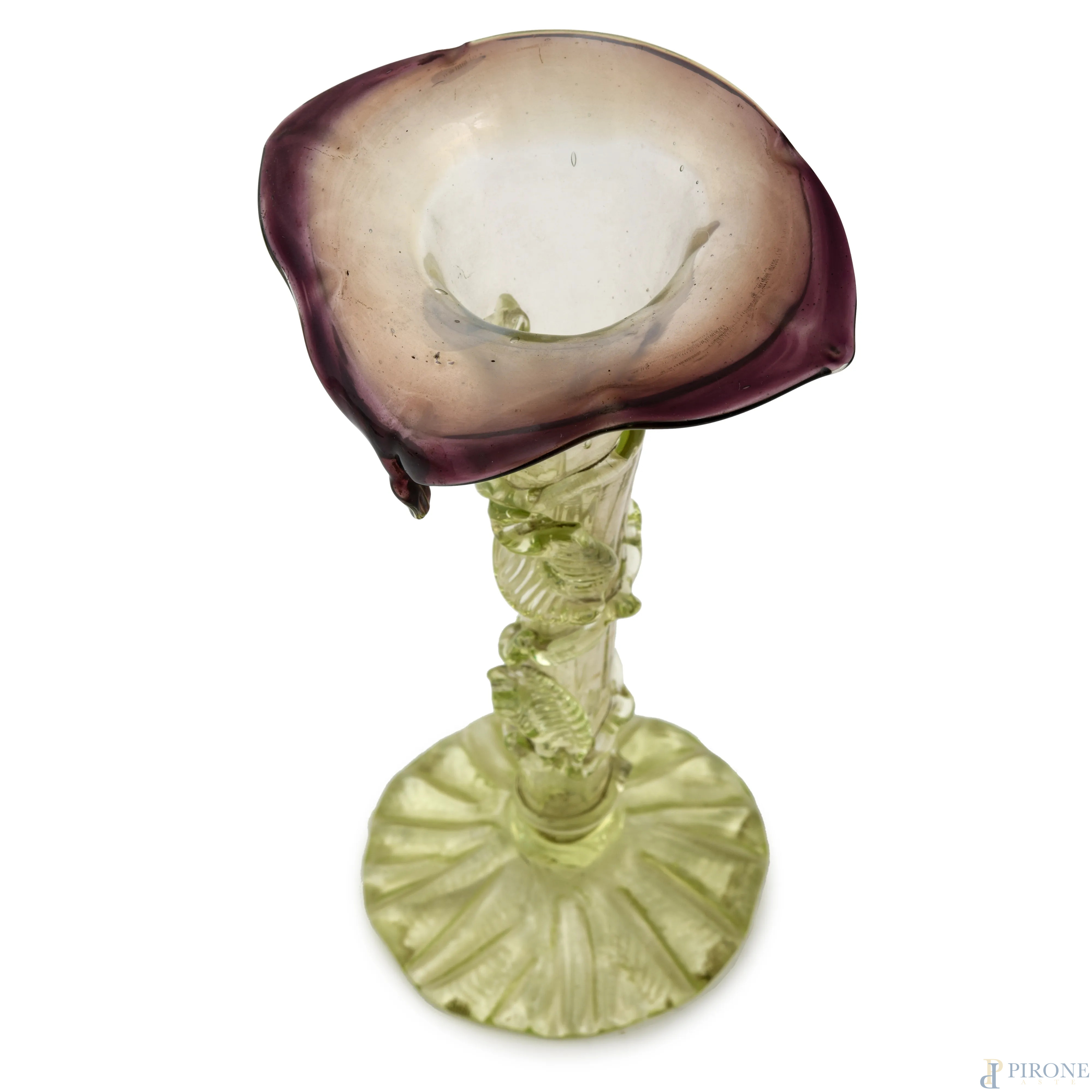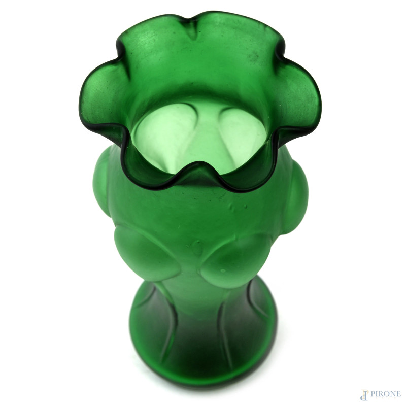 Lotto di tre vasetti in vetro di varia foggia, XX secolo, altezza massima cm 24,5(segni di usura del tempo)