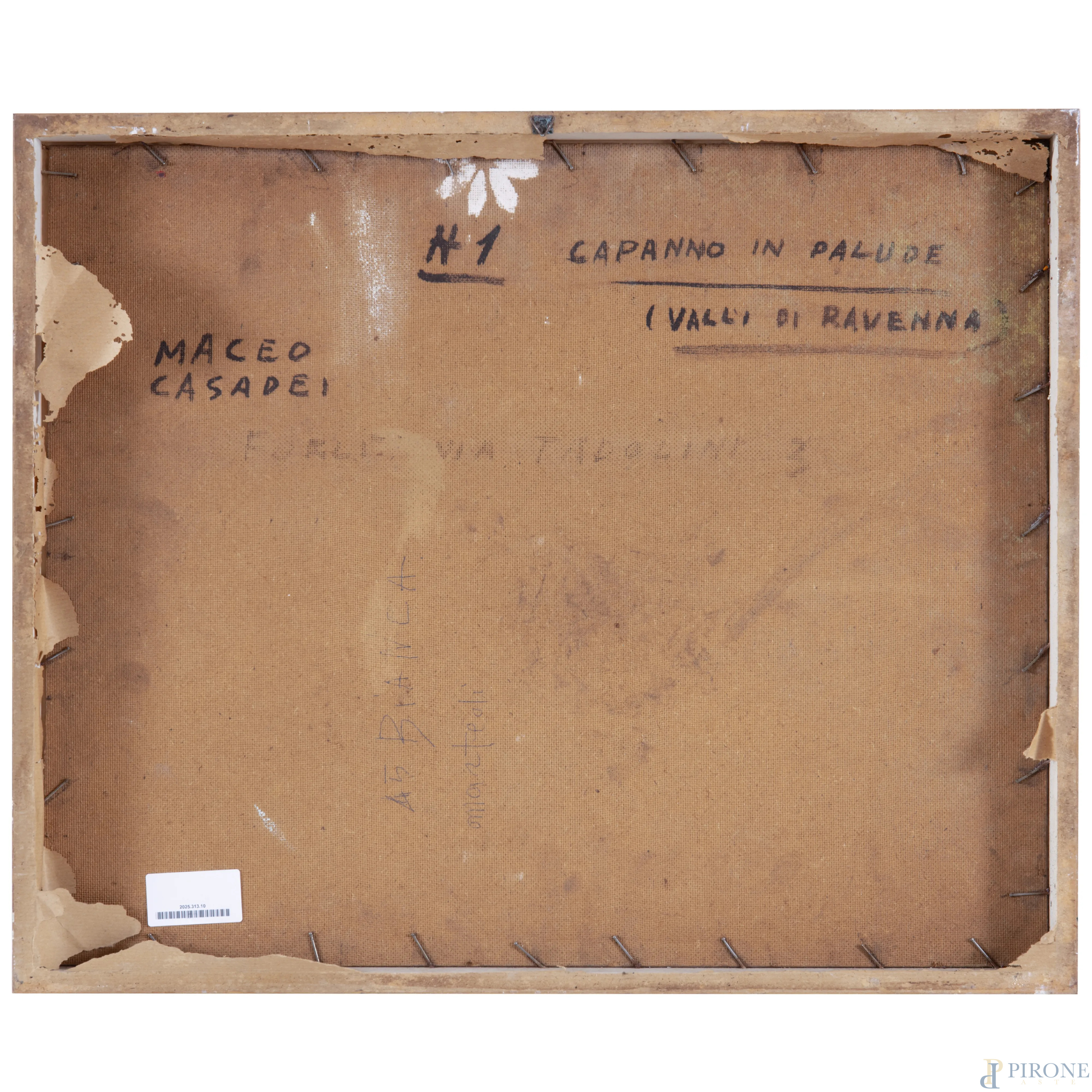 Maceo Casadei(1899-1992), Capanno in Palude (Valli di Ravenna), tecnica mista su masonite, cm 60x50, entro cornice