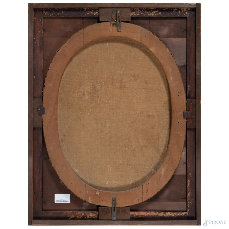 Madonna con Bambino dormiente e San Giovannino, XIX secolo, olio su tela circolare, cm 67x52, entro cornice