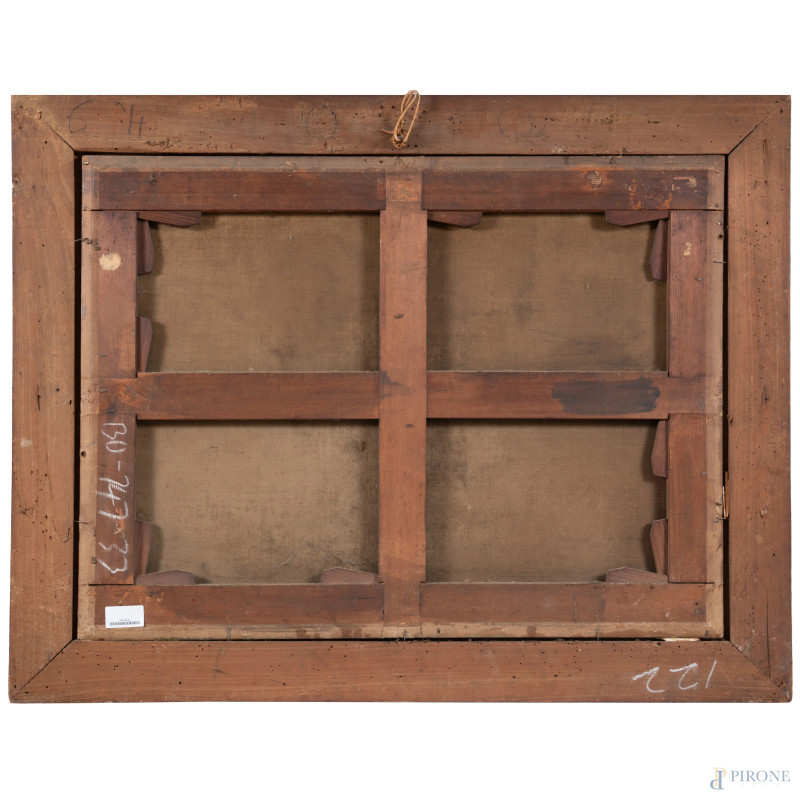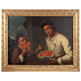 Mangiatori di angurie, XVIII-XIX secolo, olio su tela, cm 97x74,5, siglato in basso, entro cornice