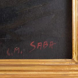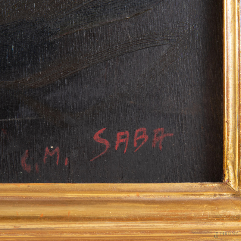 Marcello Coccon Saba, Gli amanti, XIX-XX secolo, olio su compensato, cm 71x54, firmato in basso a destra, entro cornice, (difetti)