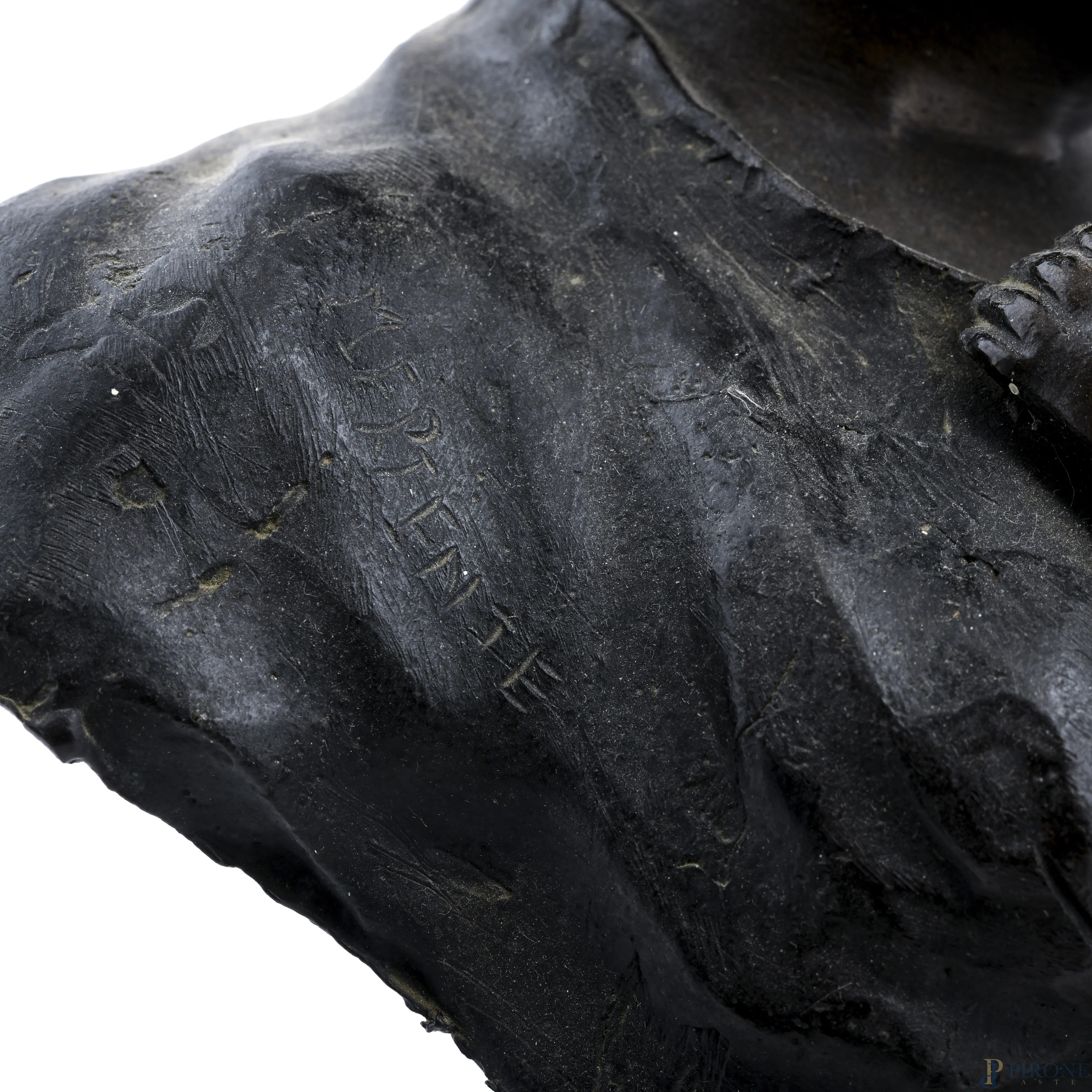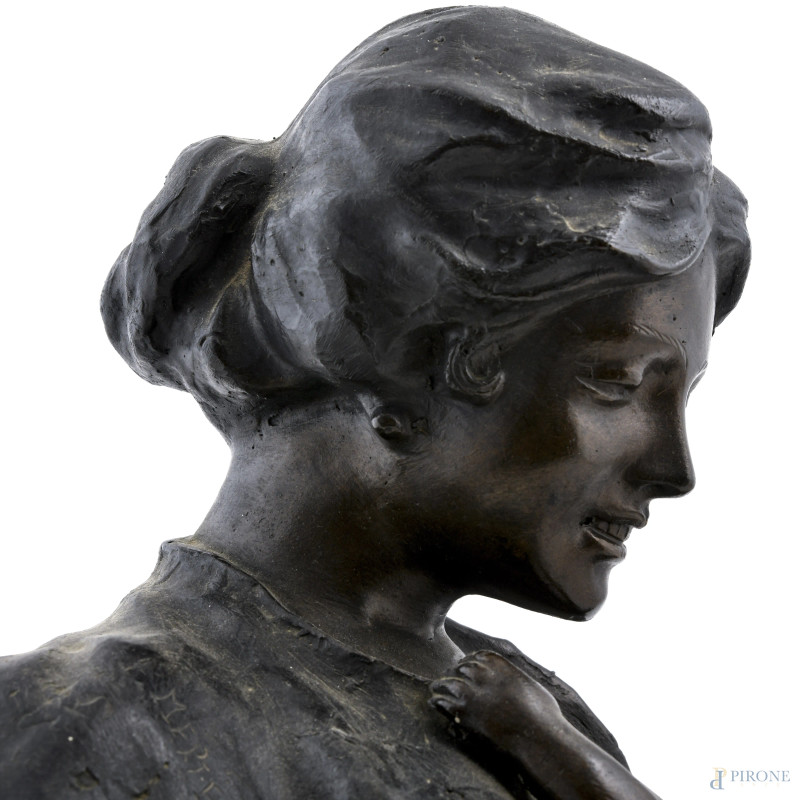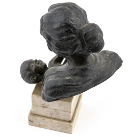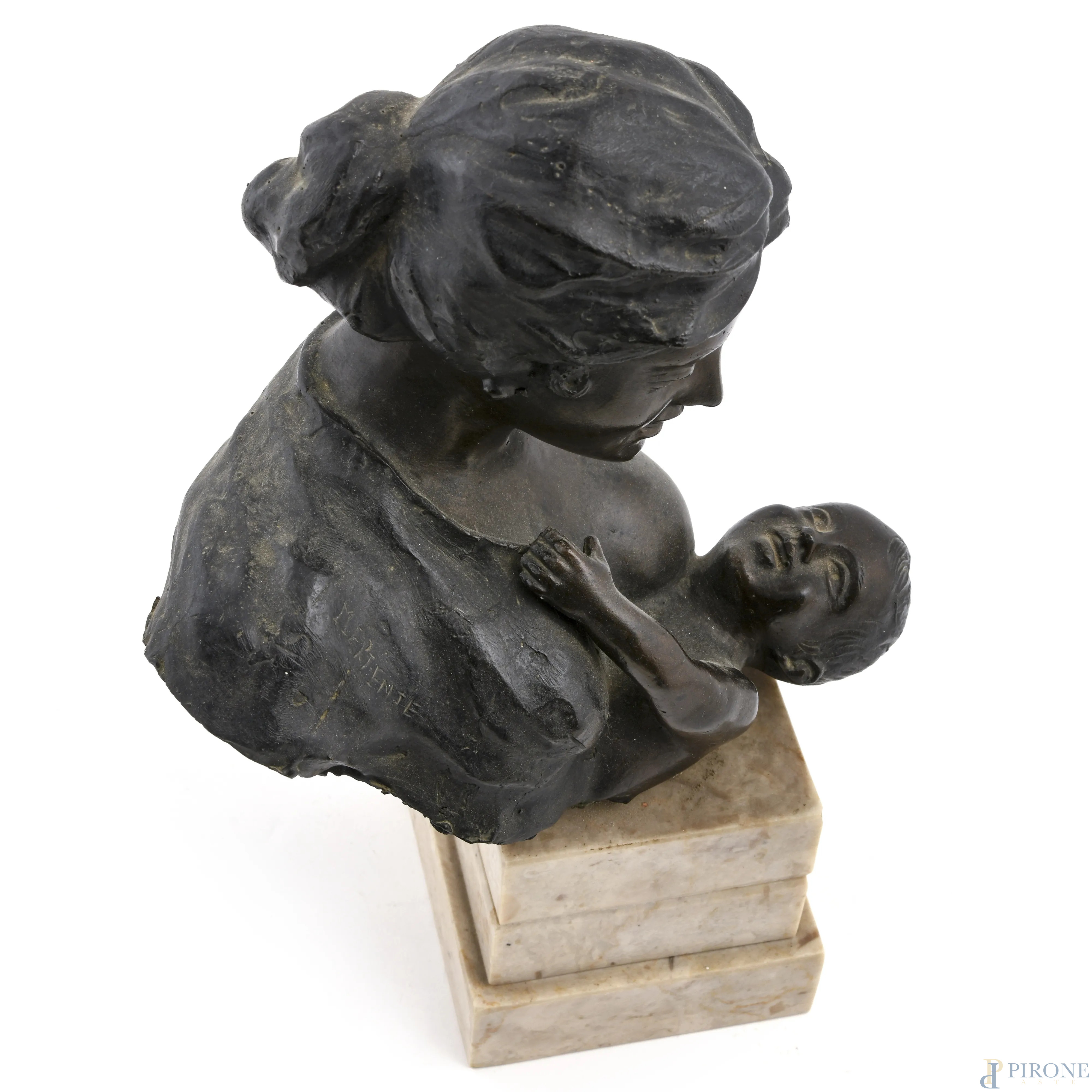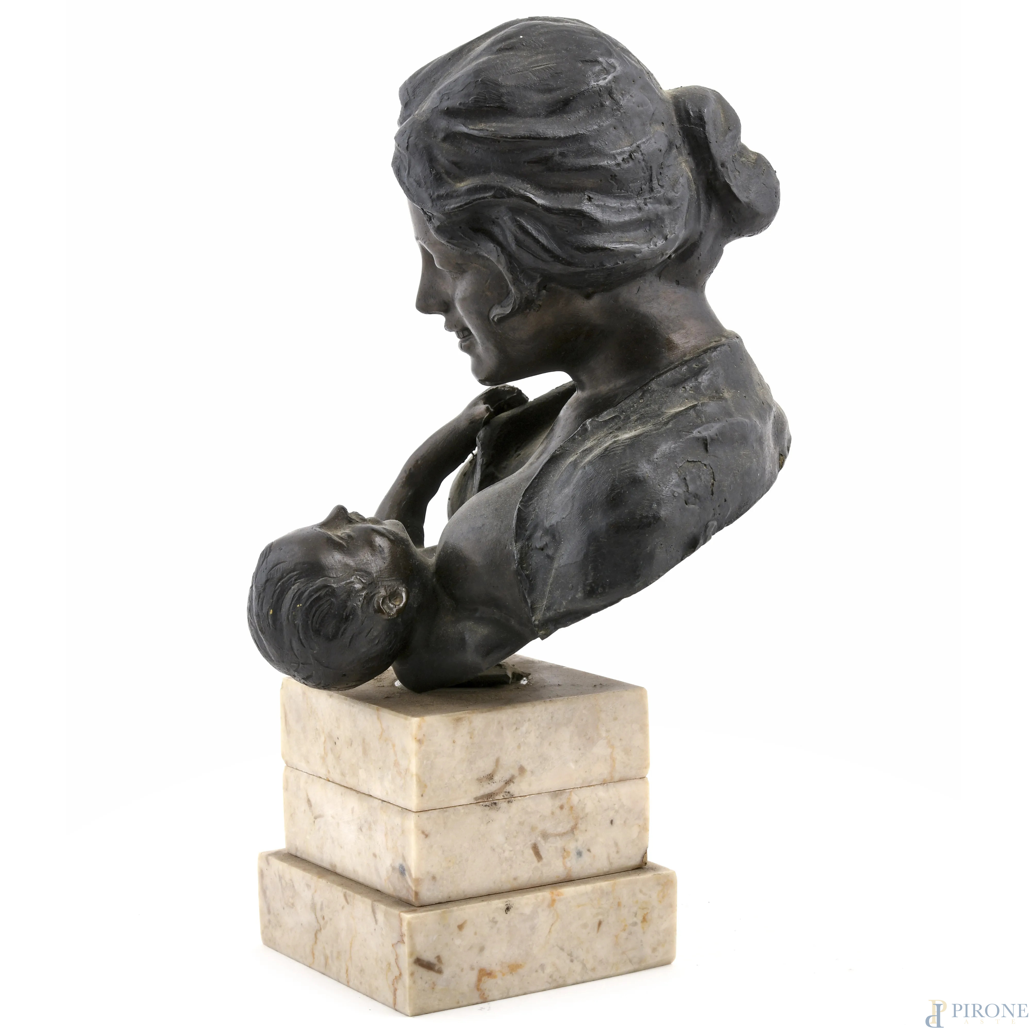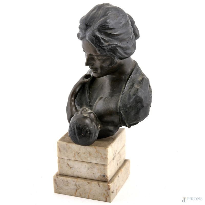 Maternità, scultura in bronzo su base in marmo, altezza cm 33, firmato, (segni di usura)