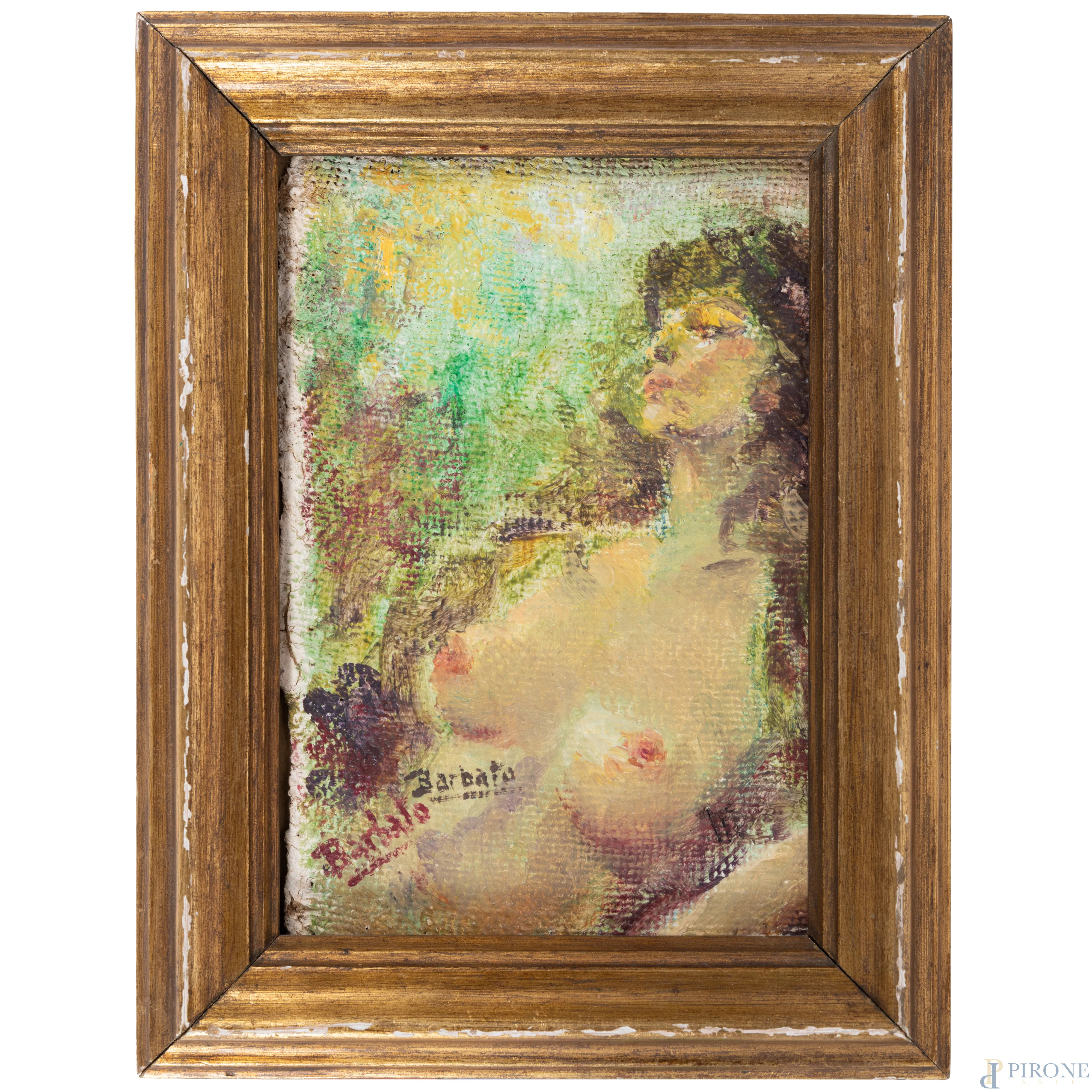 Nudo di donna, olio su cartone, cm 23x16, firmato, entro cornice