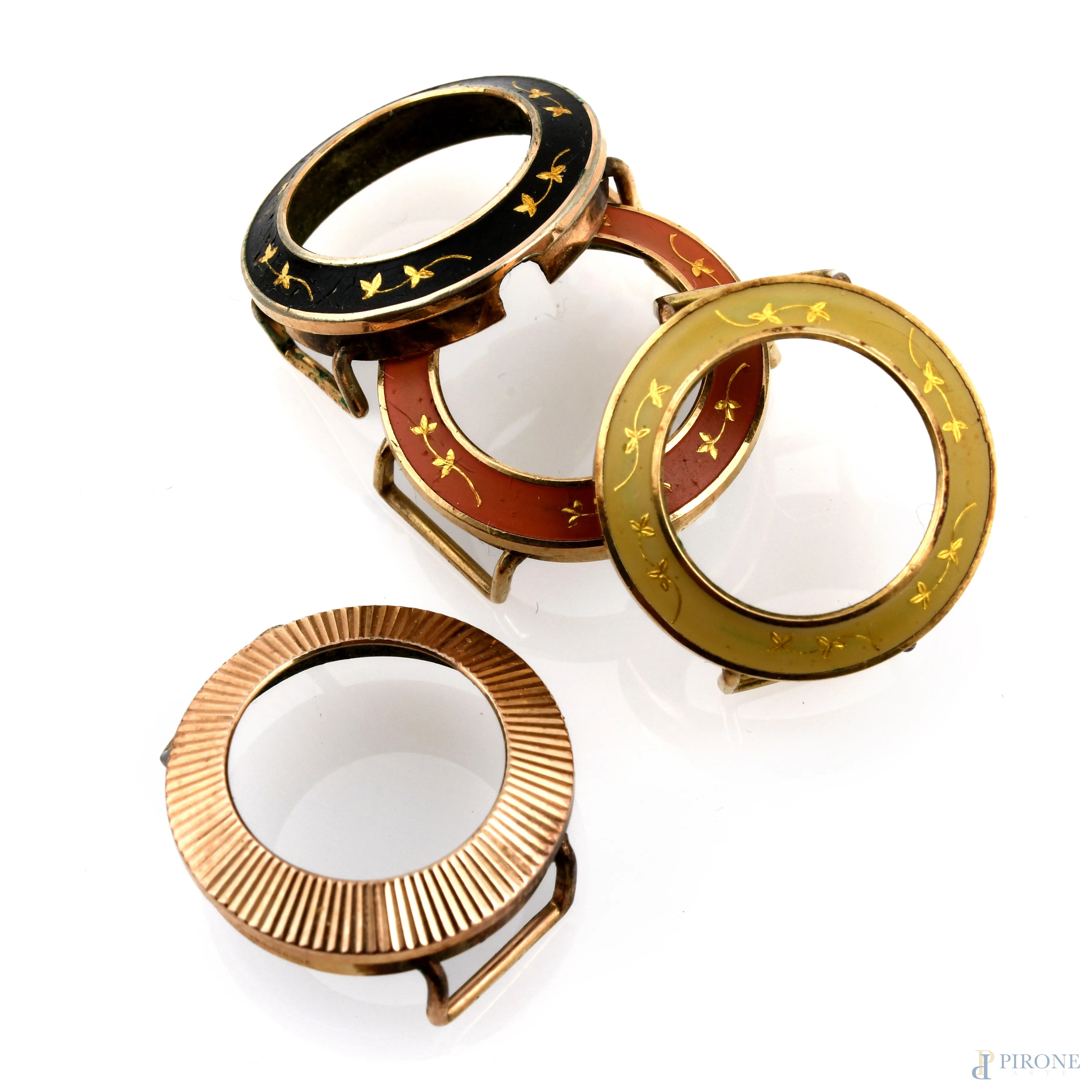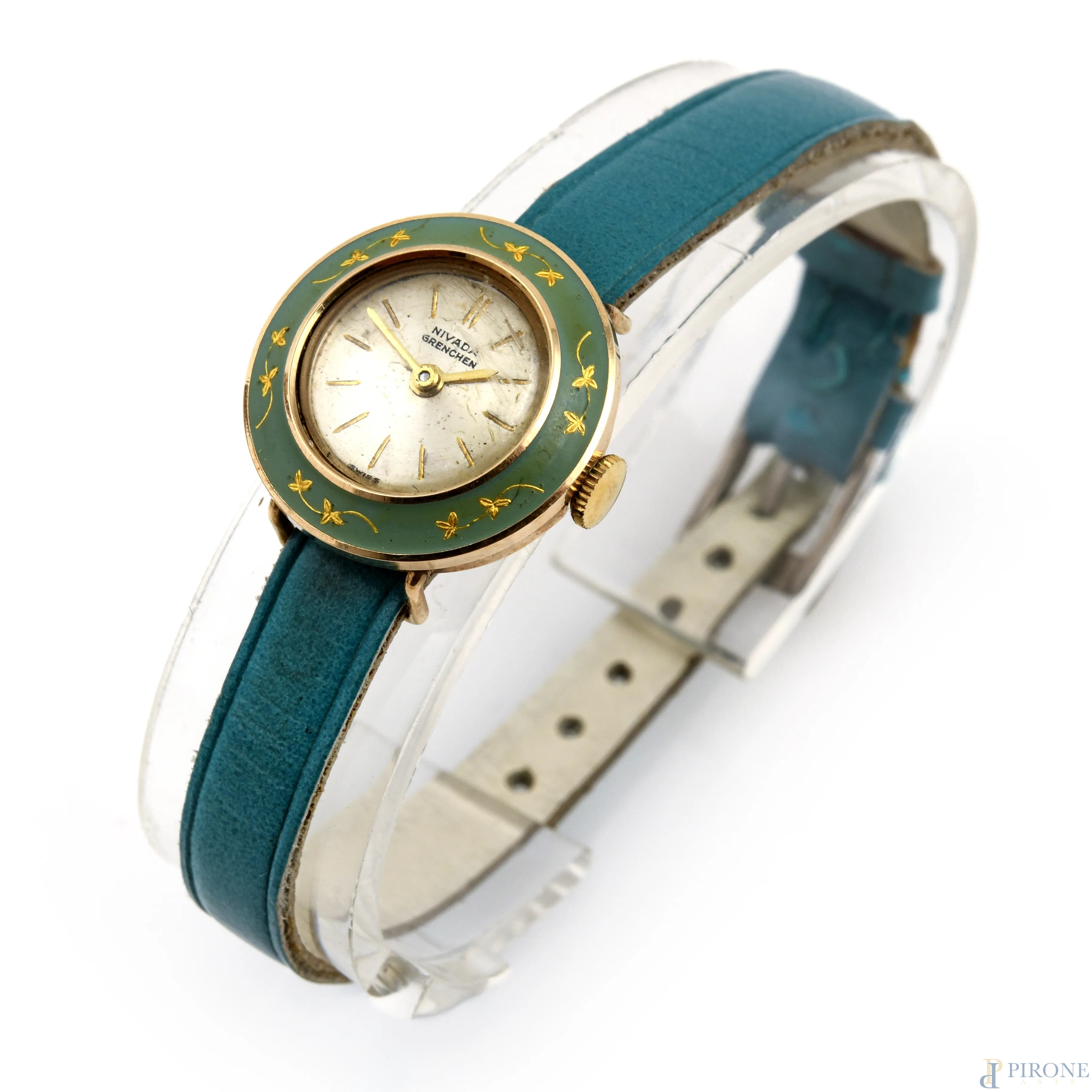 Orologio da polso Croton Nivada Grenchen Colorama VI con casse intercambiabili in metallo dorato, lunghezza cm 19; cassa cm 2x2, (segni di usura, difetti)
