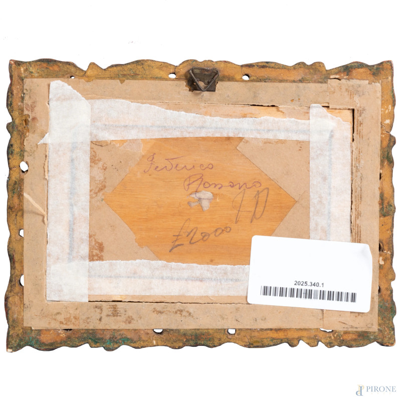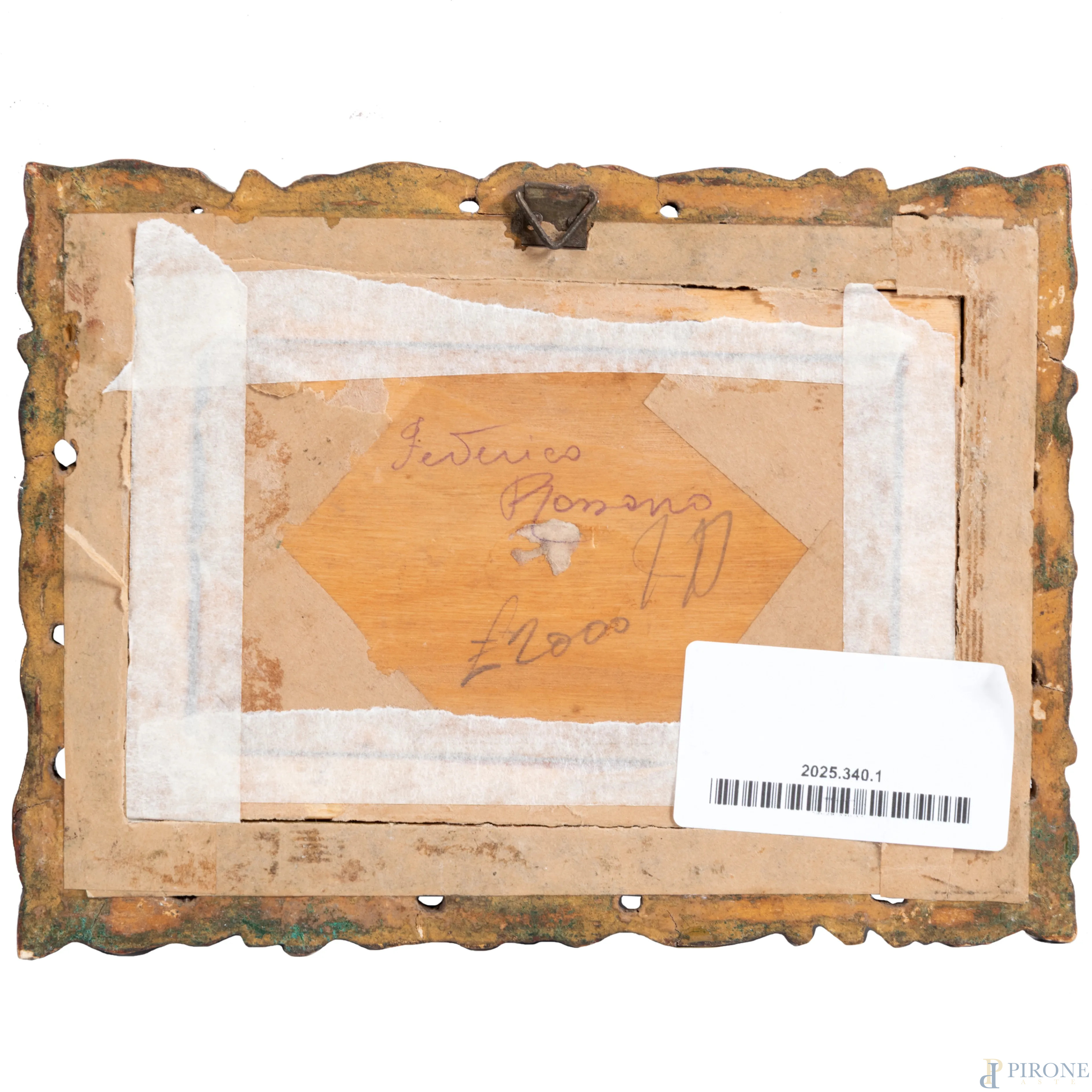 Paesaggio con alberi, olio su tavola, cm 9x14, entro cornice