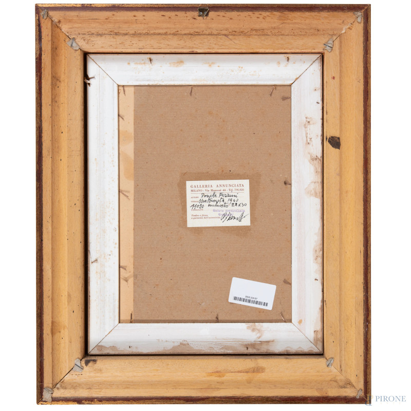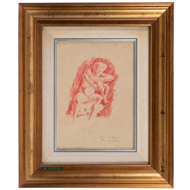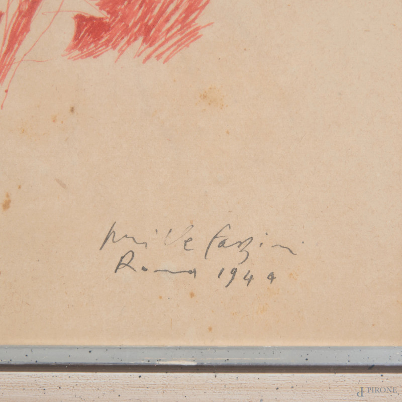 Pericle Fazzini (1913 - 1987), Maternità, disegno ad inchiostro su carta, cm 30x22, firmato e datato "Roma 1944) in basso, entro cornice (tracce di umidità, ondulazioni, segni di usura)
