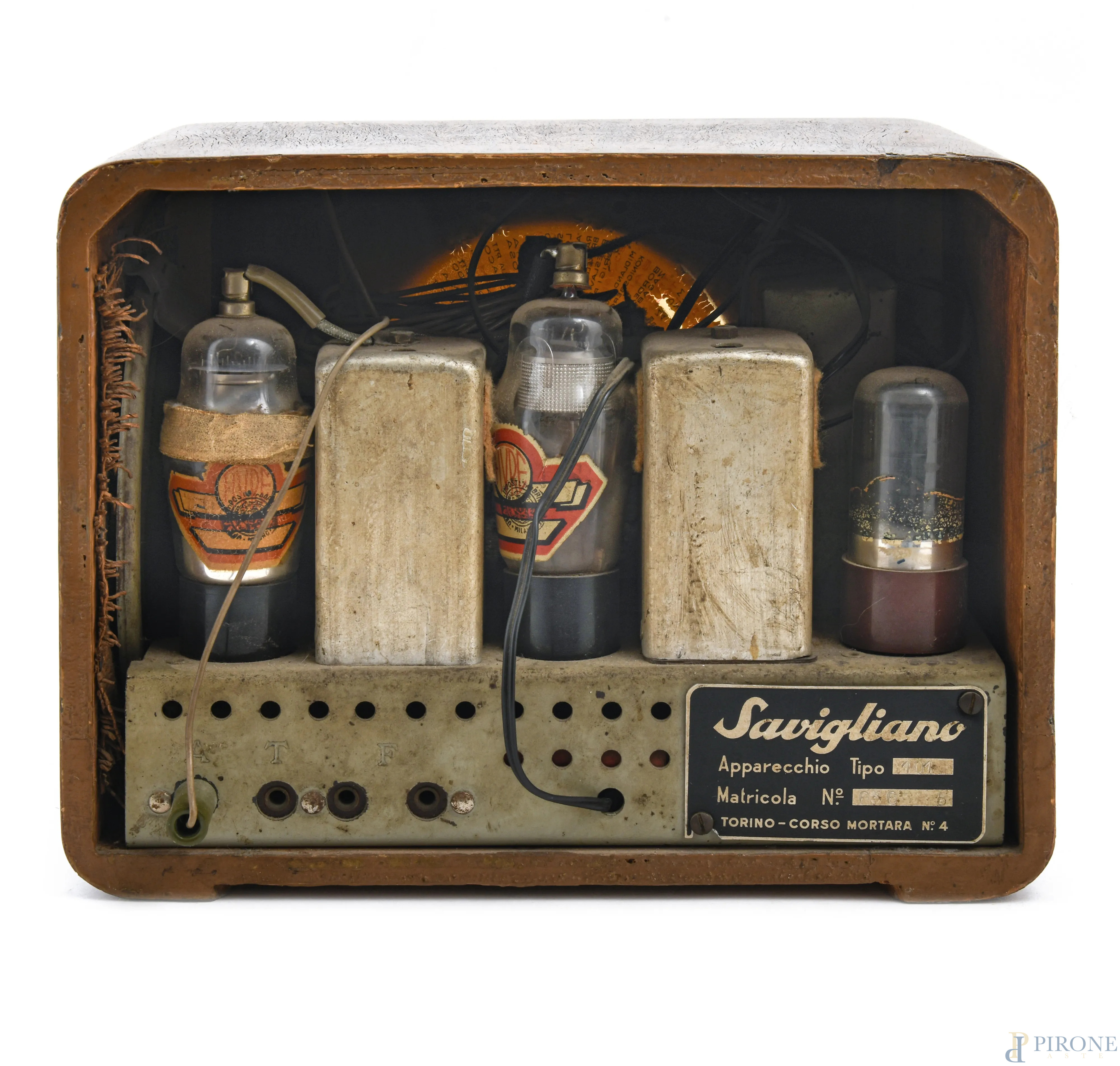 Radio Savigliano apparecchio tipo 101, XX secolo, cm 19x24,5x17, (rotture, segni di usura, da revisionare)