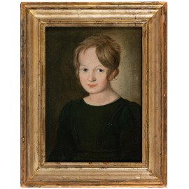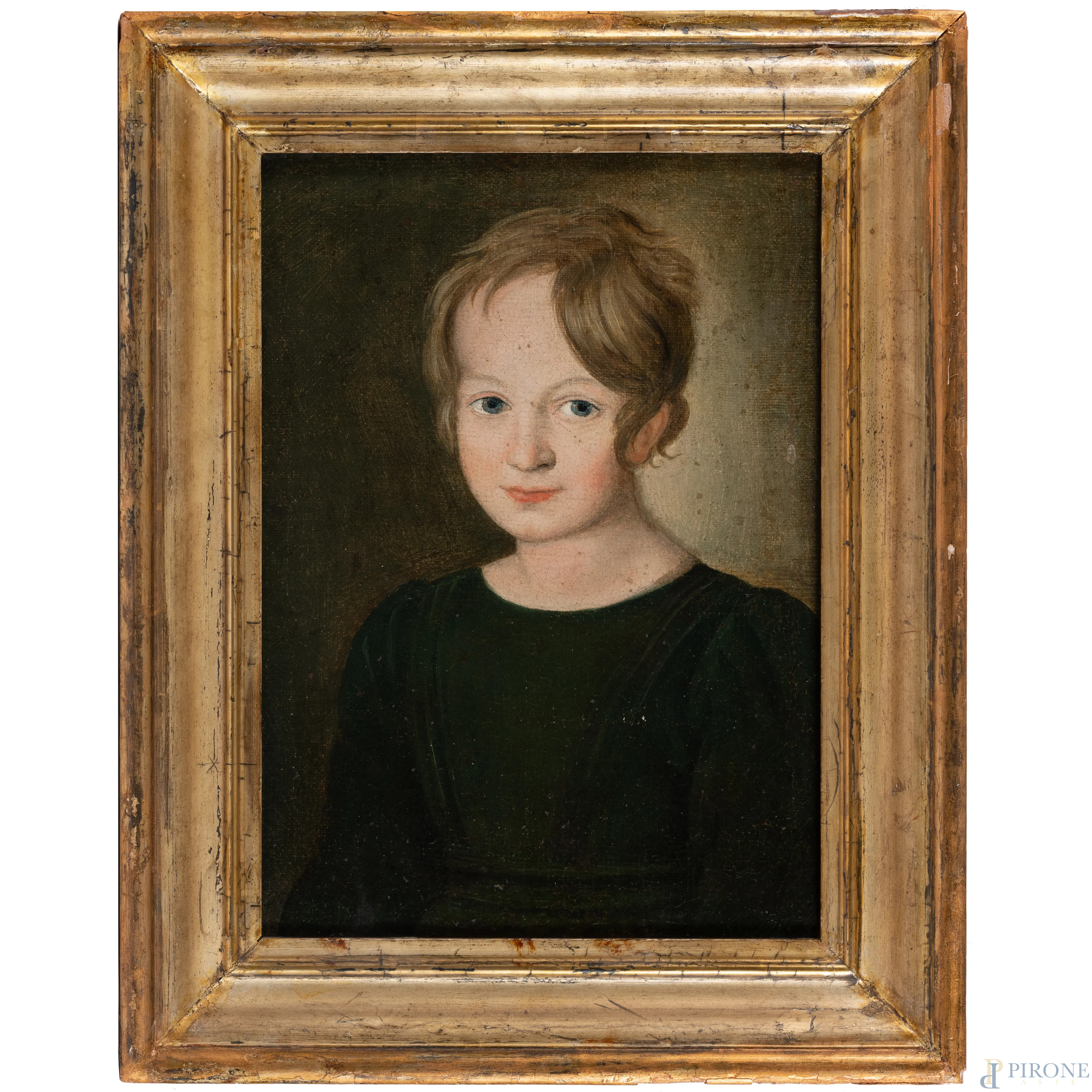 Ritratto di fanciulla, XIX secolo, olio su tela, cm 40x30, entro cornice (piccole cadute di colore, graffi)