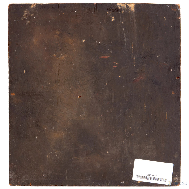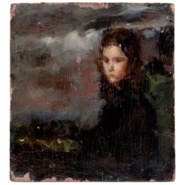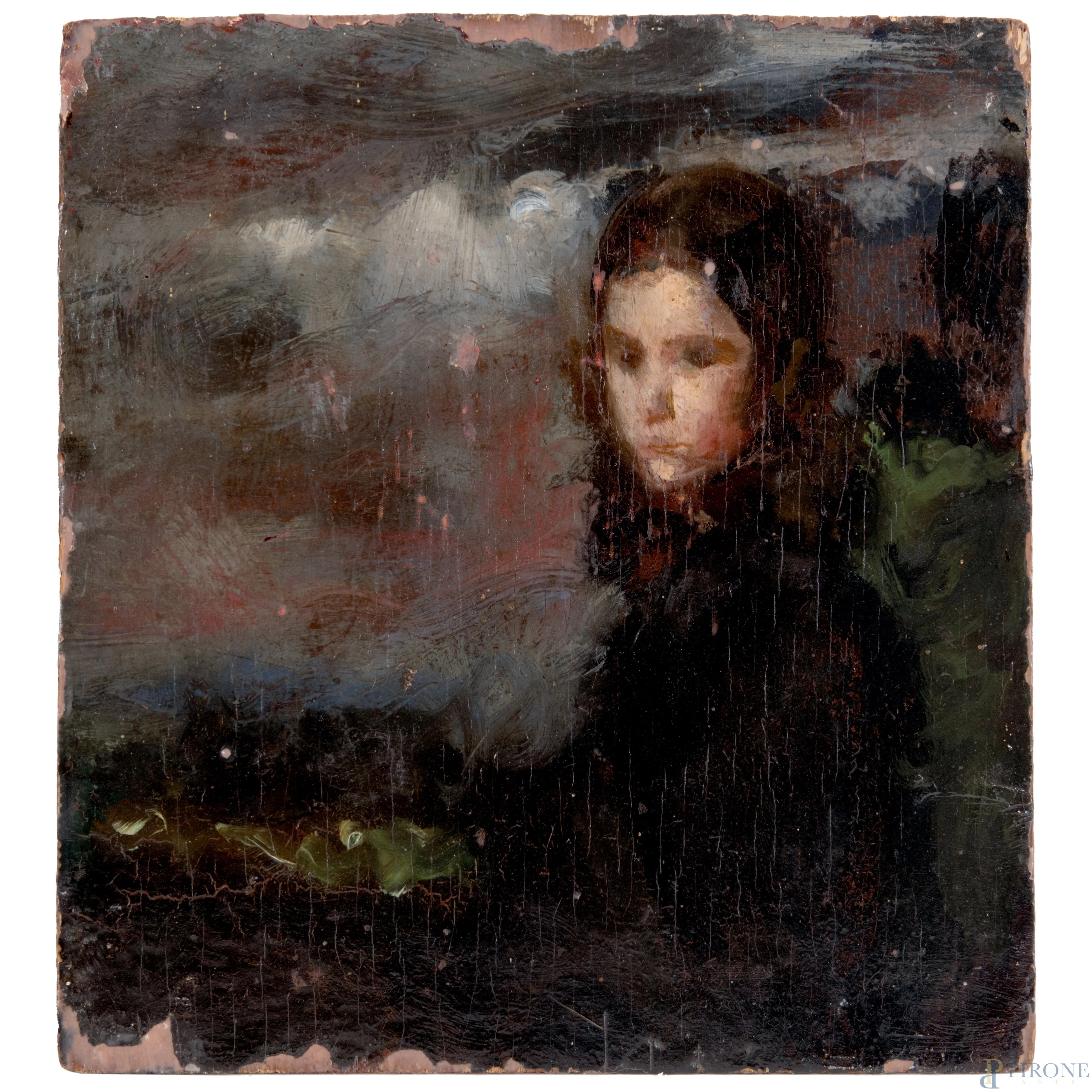 Ritratto di fanciulla, XX secolo, olio su compensato, cm 27x25, (sollevamenti e cadute di colore)