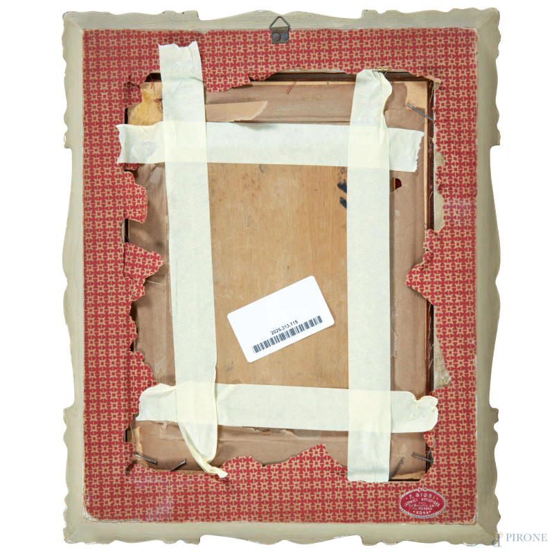 Ritratto di signora, XIX-XX secolo, olio su tavola, cm 18x12,5, entro cornice
