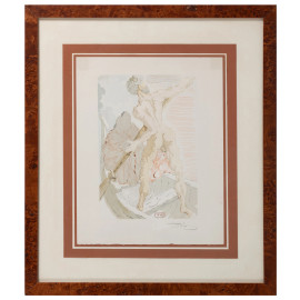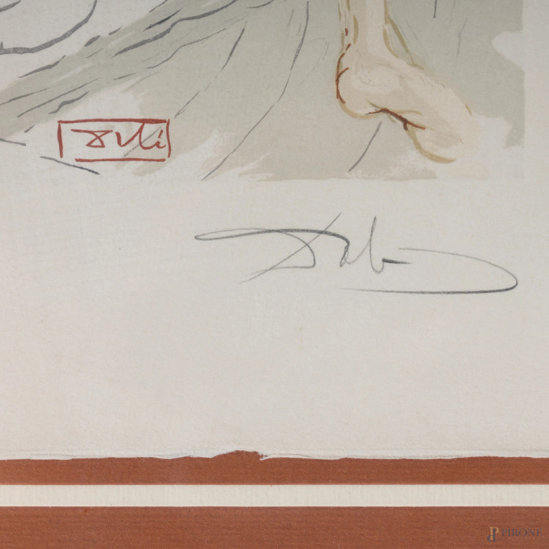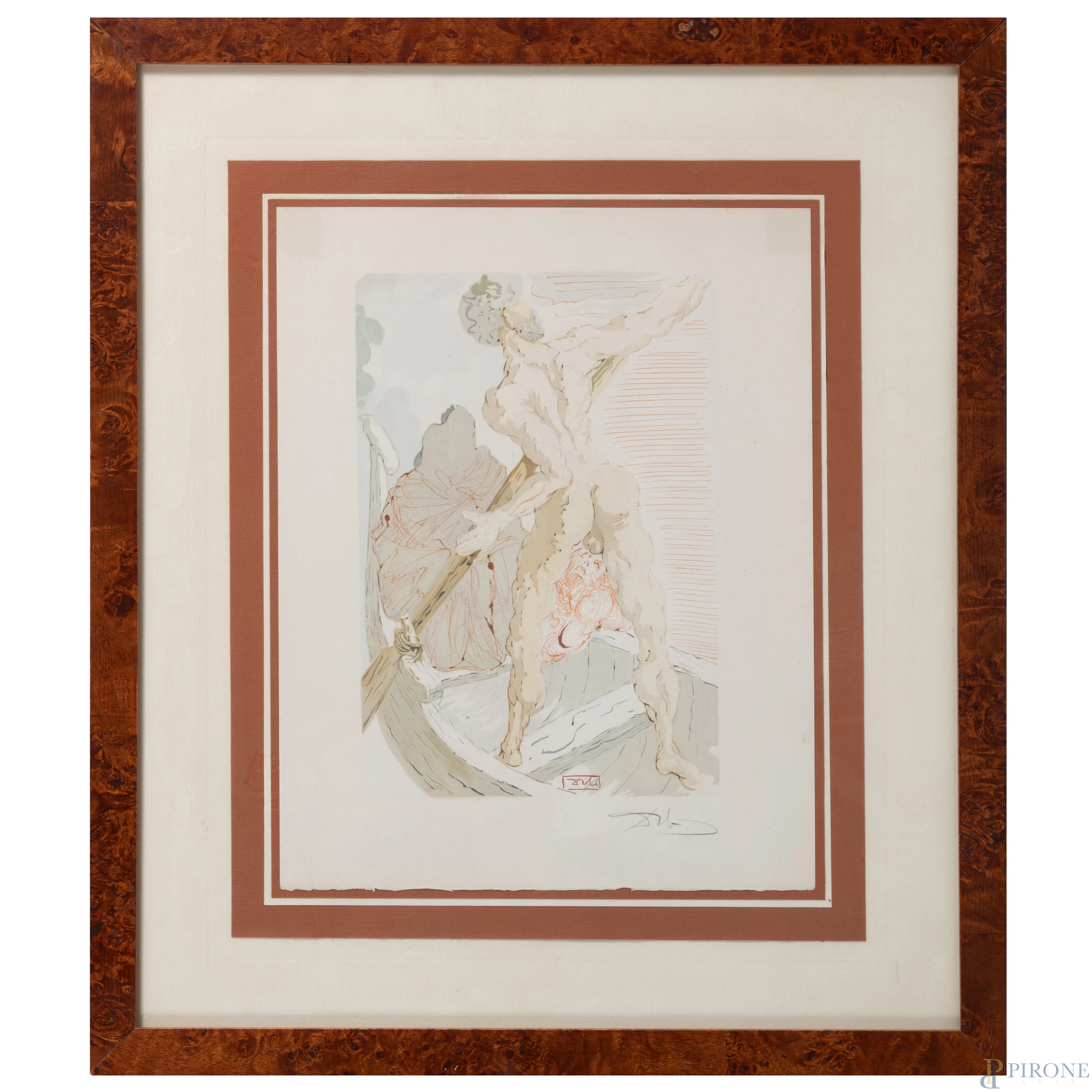 Salvador Dalì (1904 - 1989), Caronte, litografia, firmato in basso a destra, illustrazione da "La Divina Commedia" , cm 33x26, entro cornice