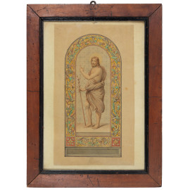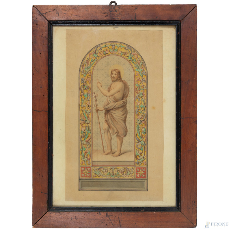 San Giovanni Battista, XIX-XX secolo, tecnica mista su carta, cm 31x18, entro cornice, (lieve foxing e ondulazione della carta)