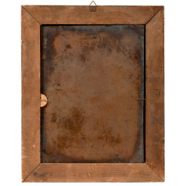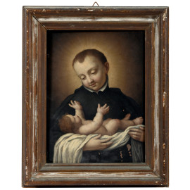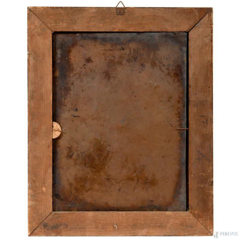 Santo con Bambino, XIX secolo, olio su rame, cm 32,5x24, entro cornice (cadute di colore, difetti)