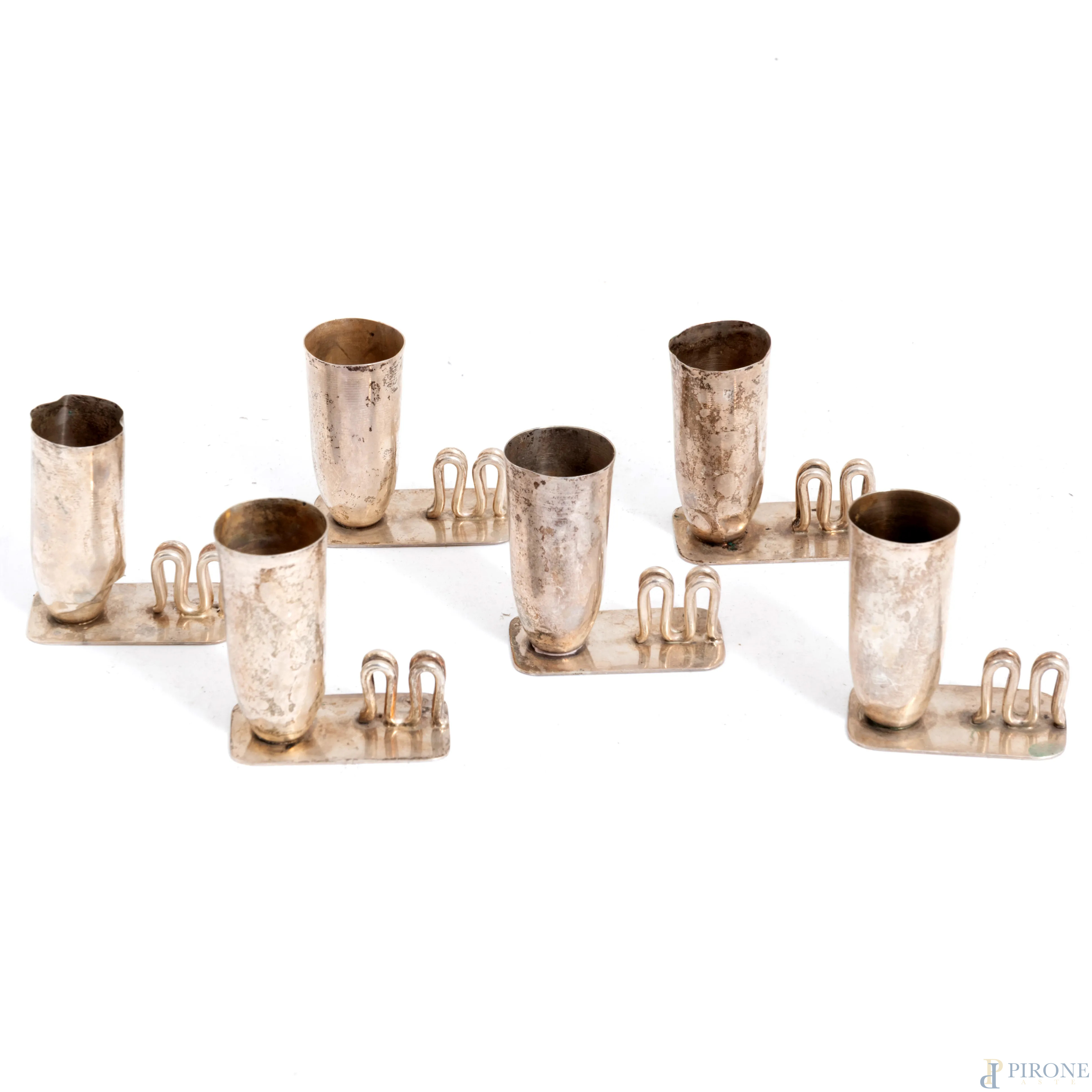 Sei segnaposto in argento 800/000, peso complessivo gr 80, altezza cm 4