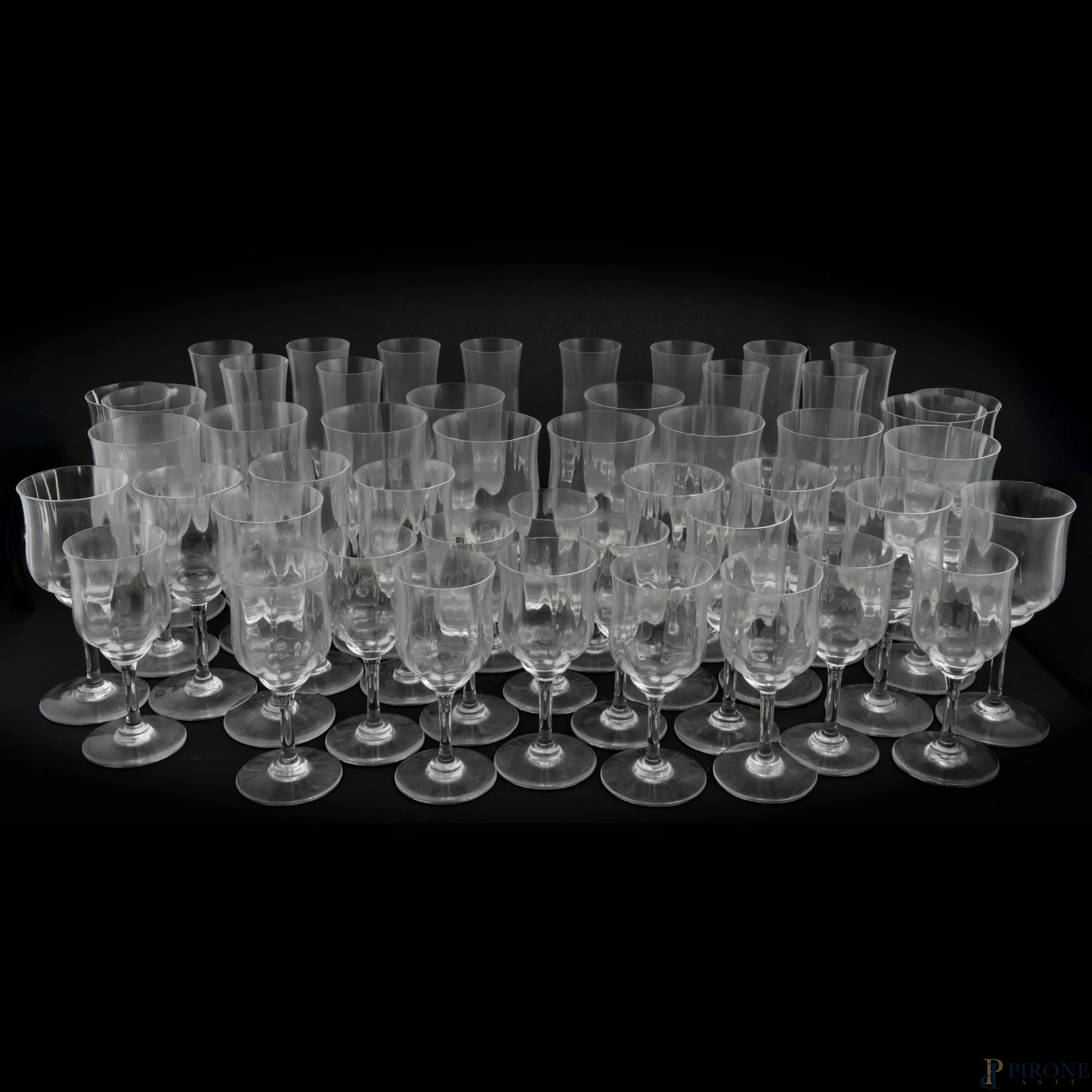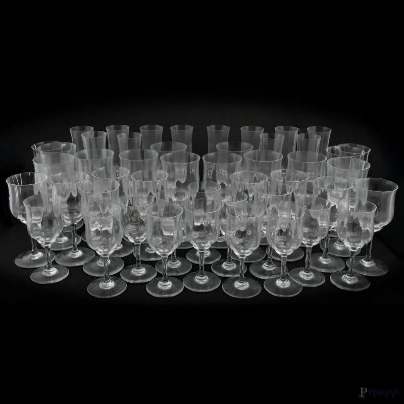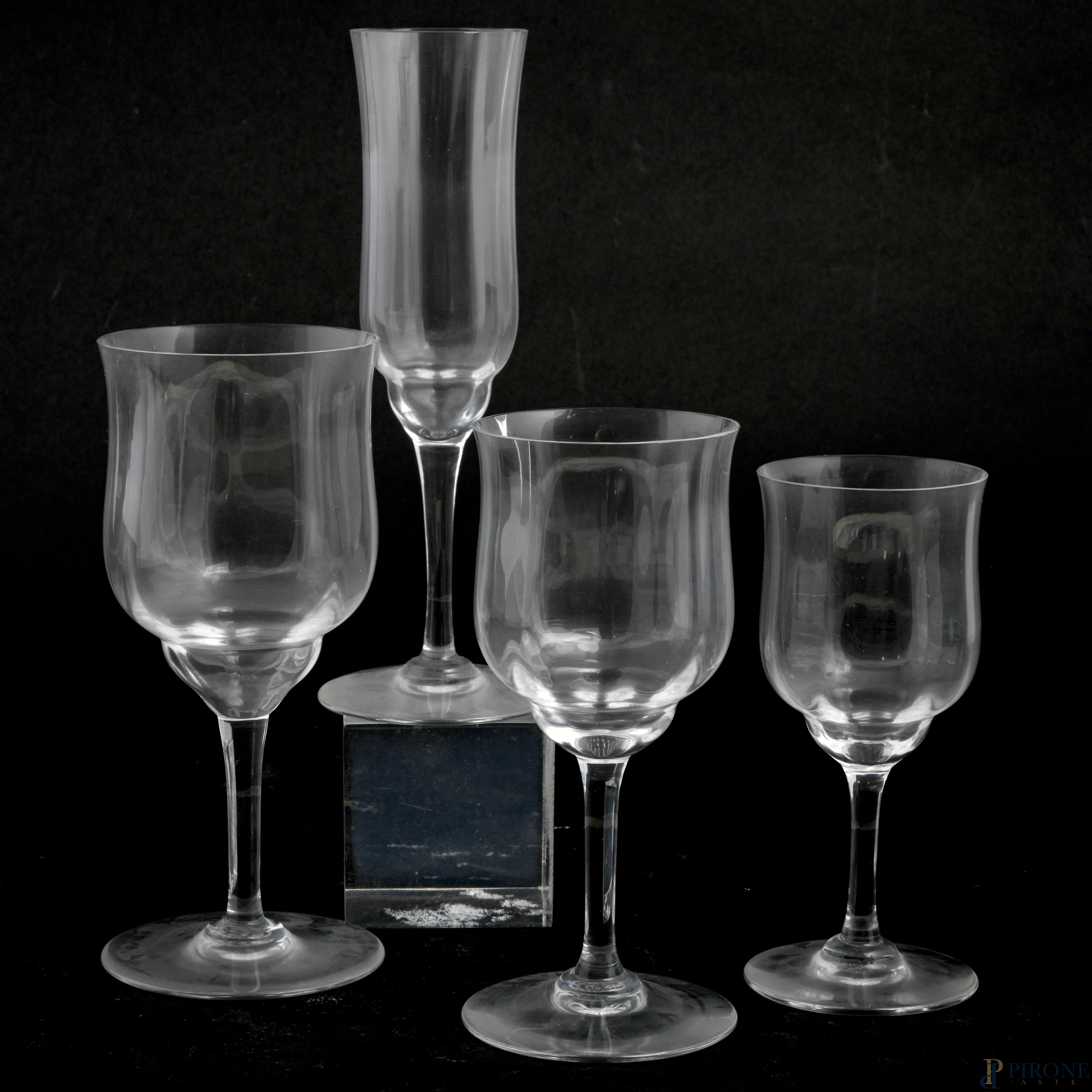 12 bicchieri da vino rosso; 12 bicchieri da vino bianco; 12 bicchieri da acqua; 12 flutes;