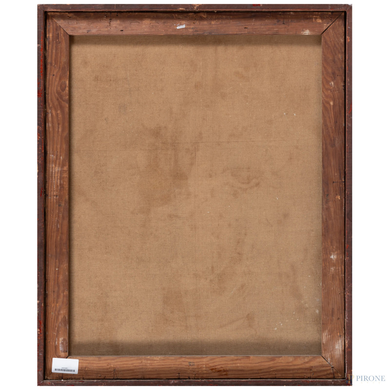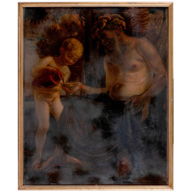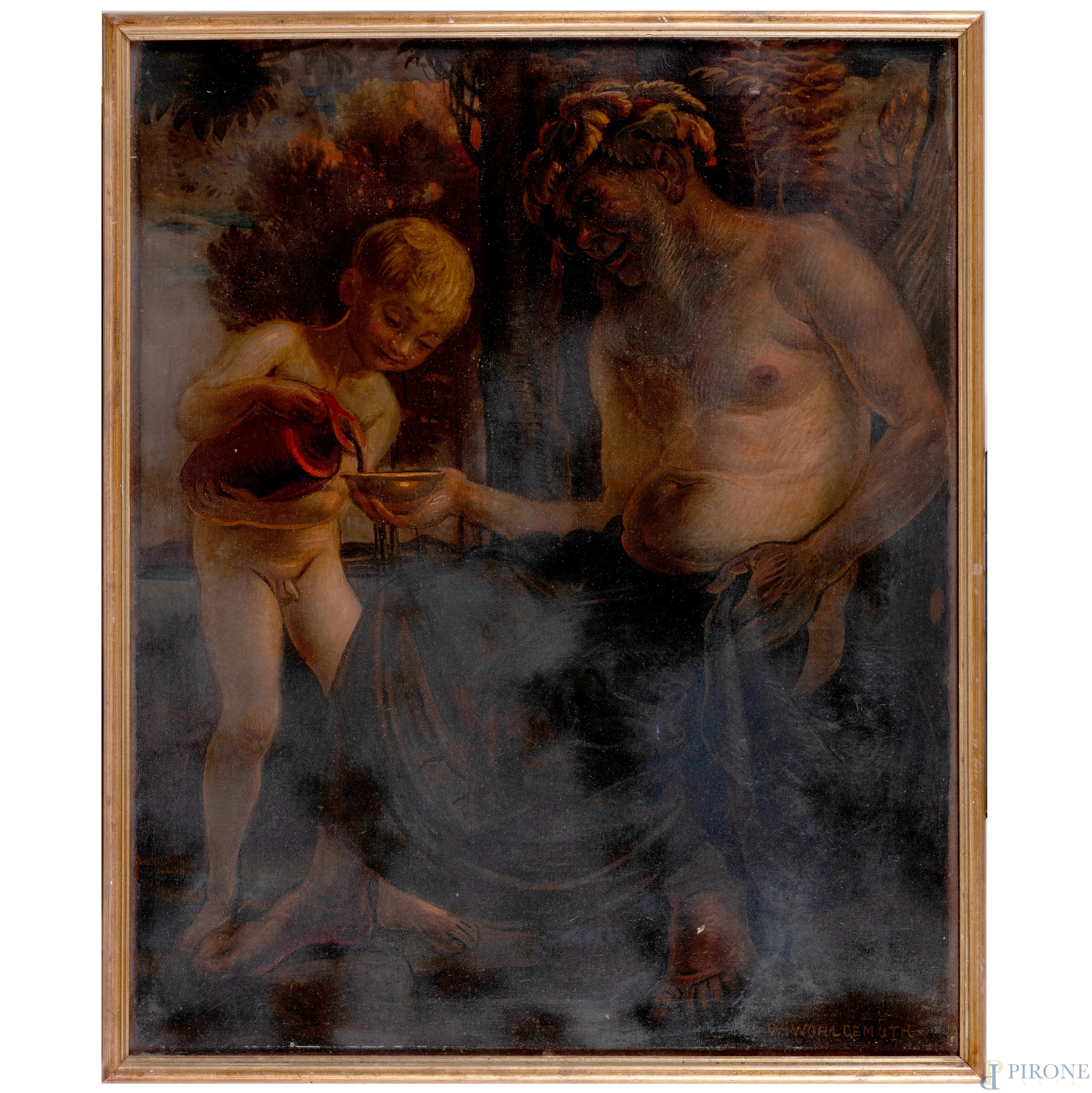 Sileno ebbro, XX secolo, olio su tela, cm 80x65, firmato in basso a destra, entro cornice, (piccole abrasioni, cadute di colore)
