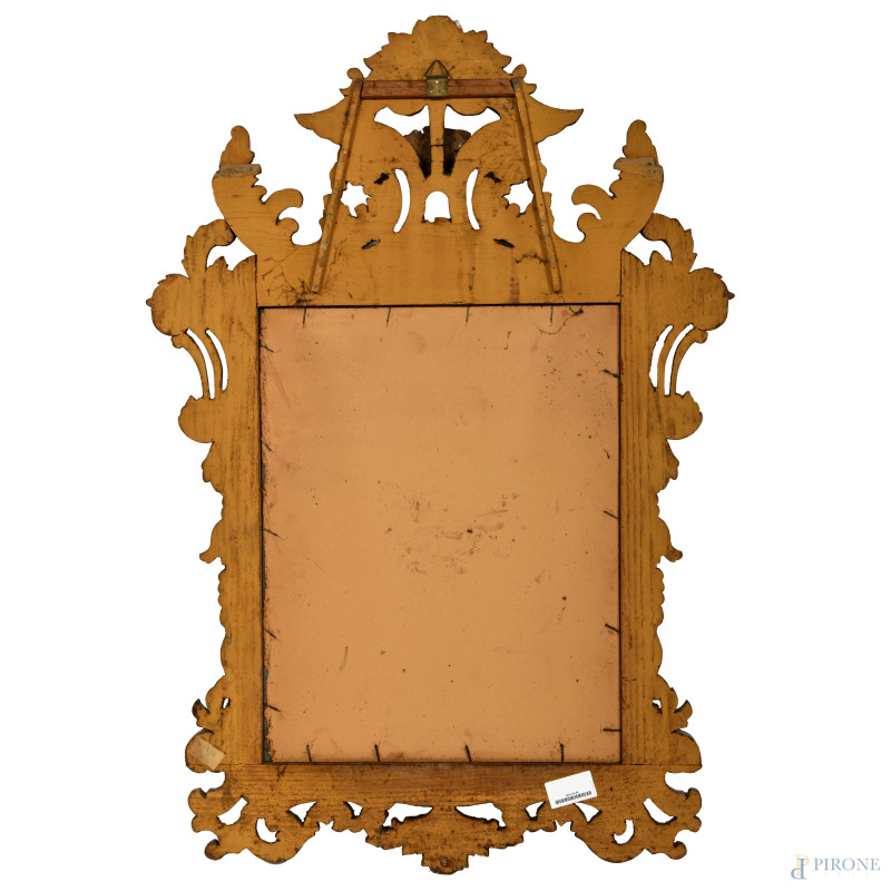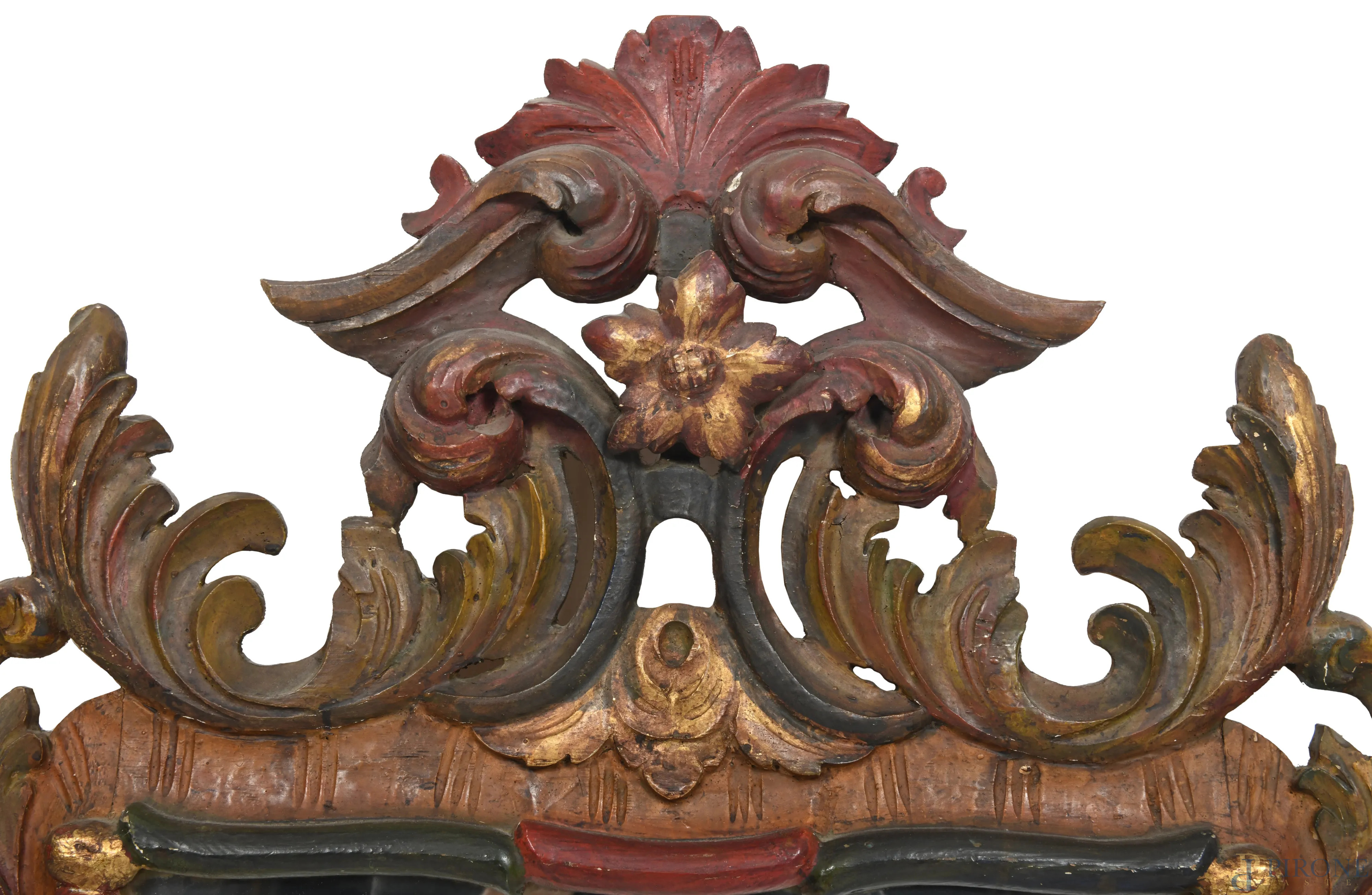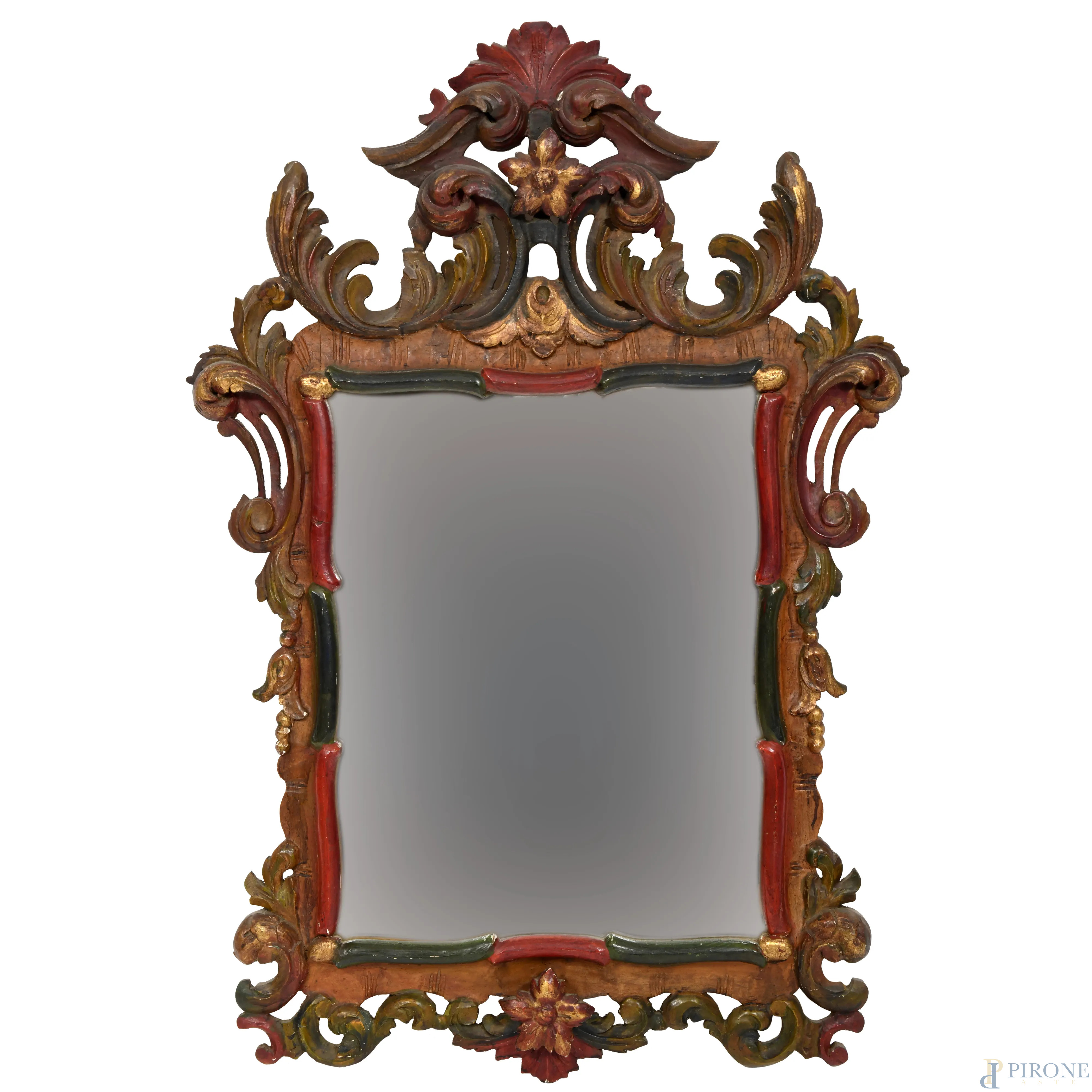 Specchiera in legno intagliato e dipinto, XX secolo, cm 100x62, (segni di usura, difetti)