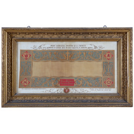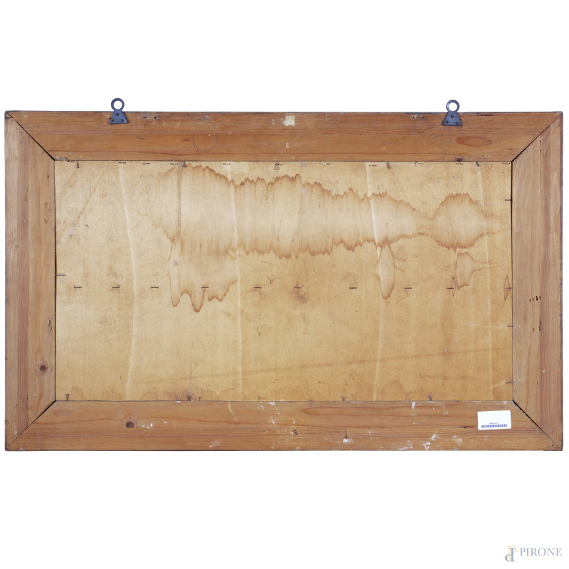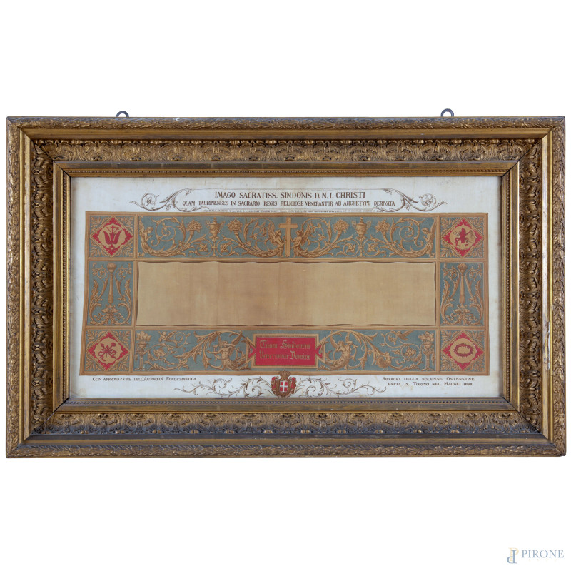 Stampa riproduzione della Sacra Sindone, XX secolo, cm 39x78 , entro cornice