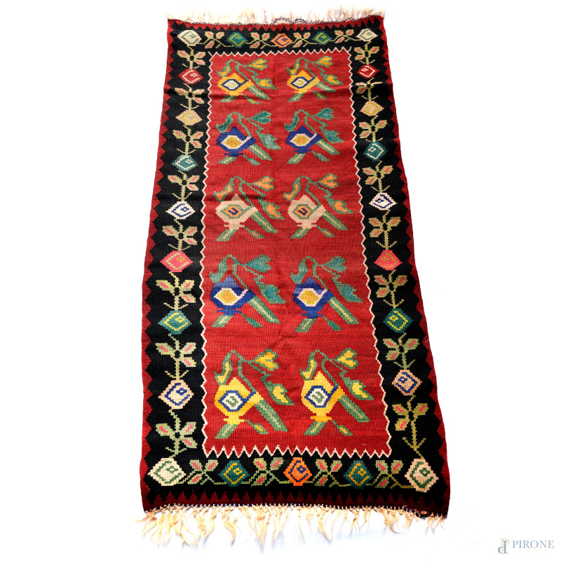 Tappeto, XX secolo, cm 243x103, (segni di usura)