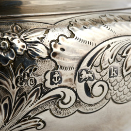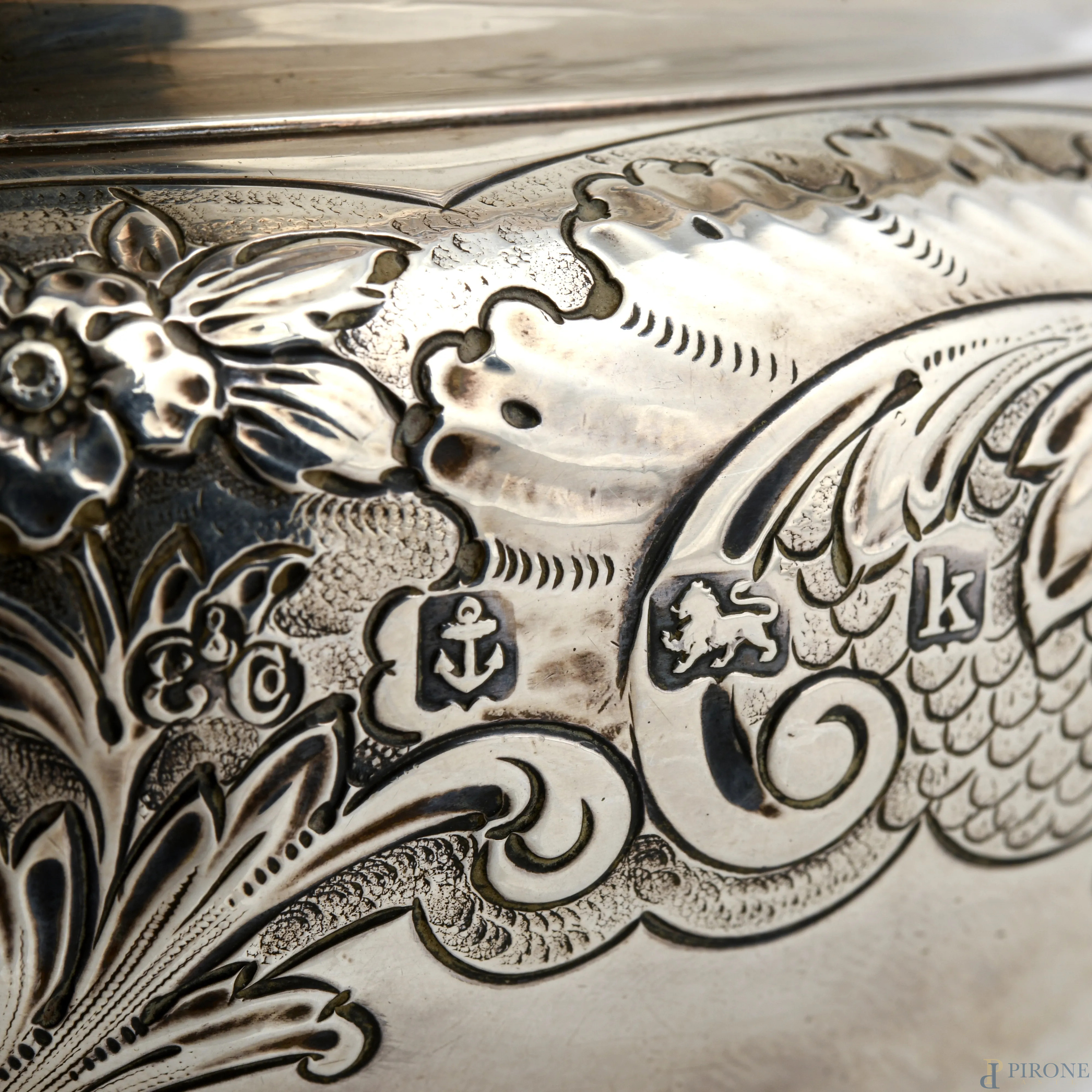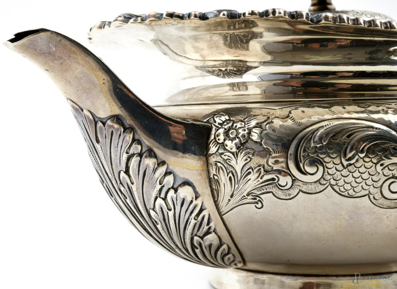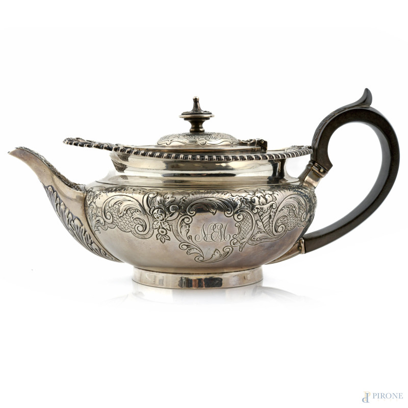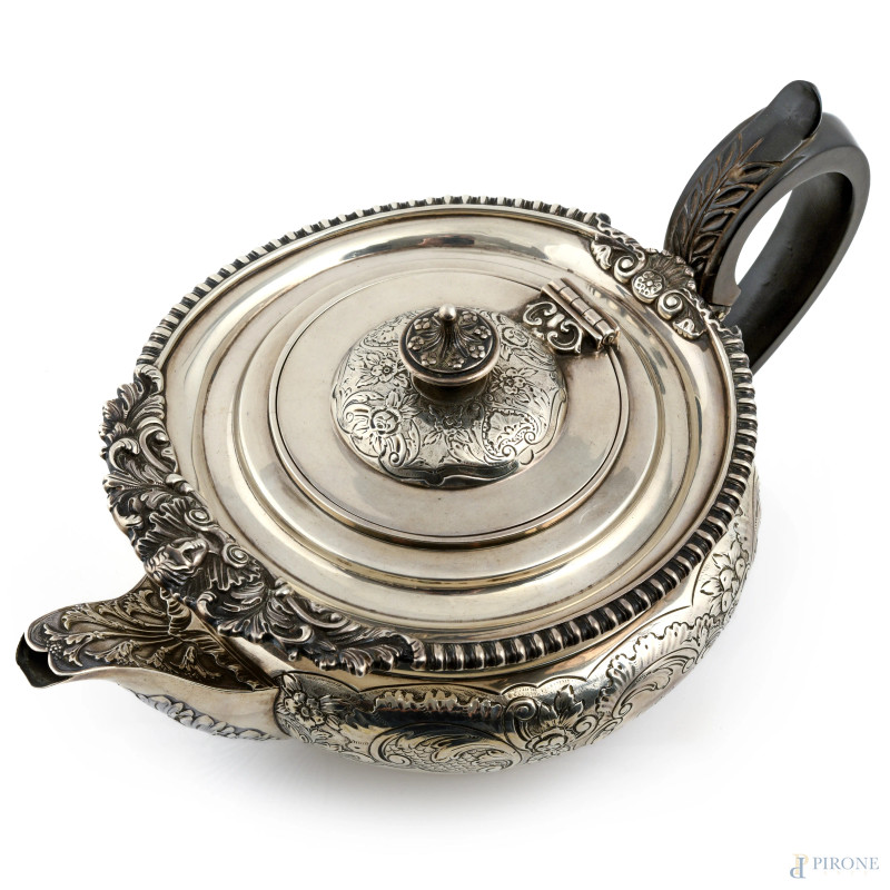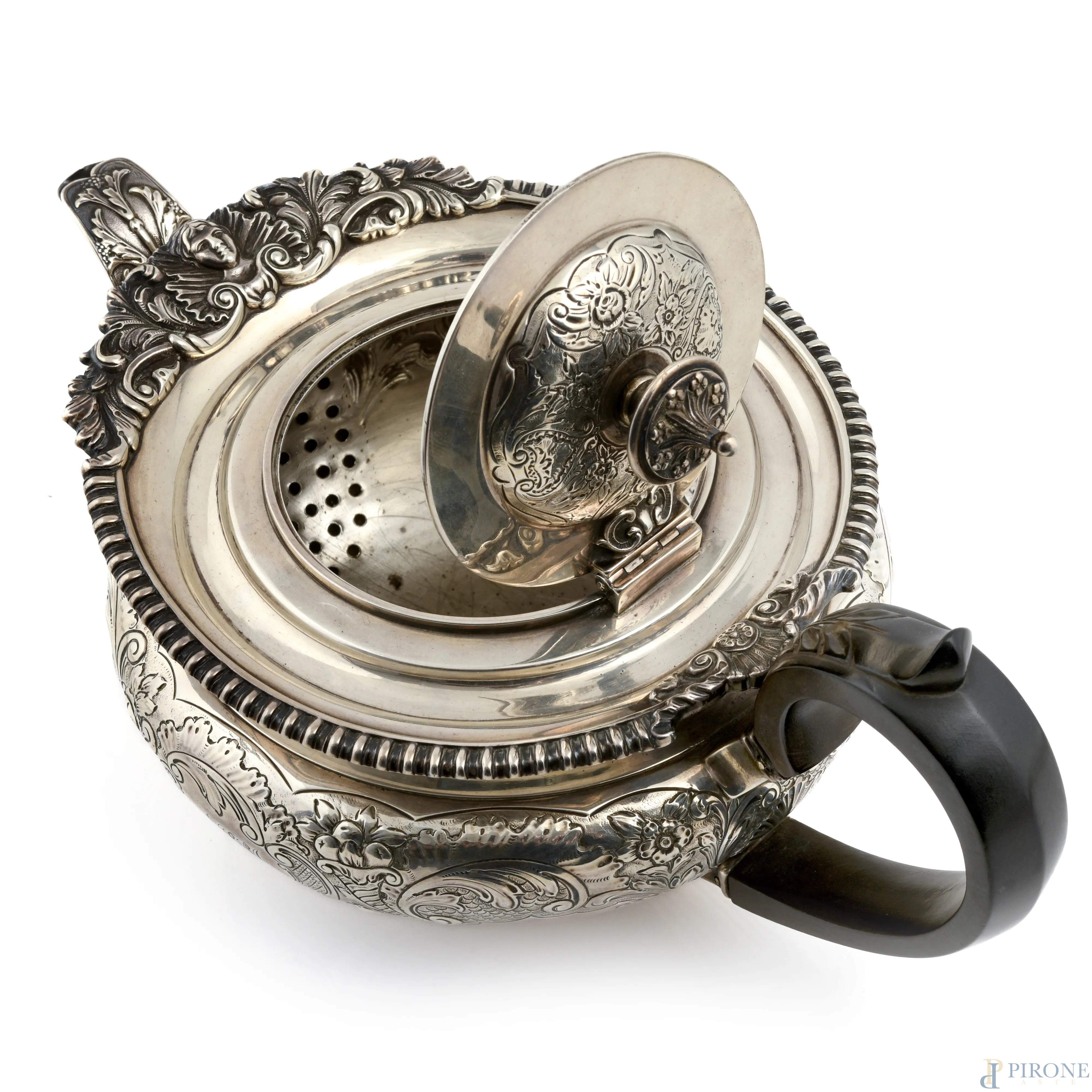 Teiera in argento inglese Elkington&Co 1909, cm 13,5x28x17, peso gr 860