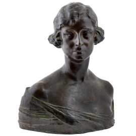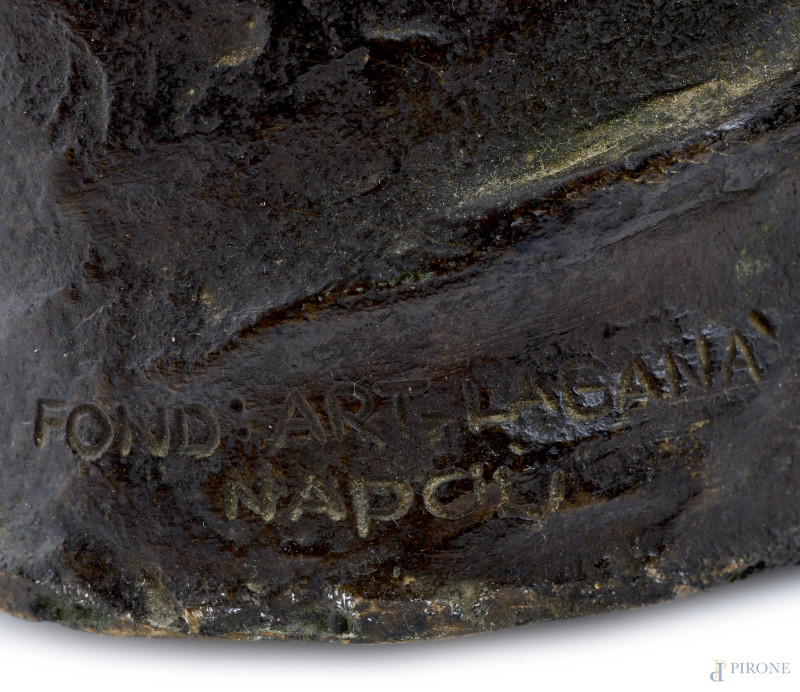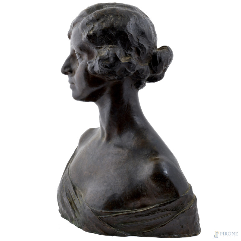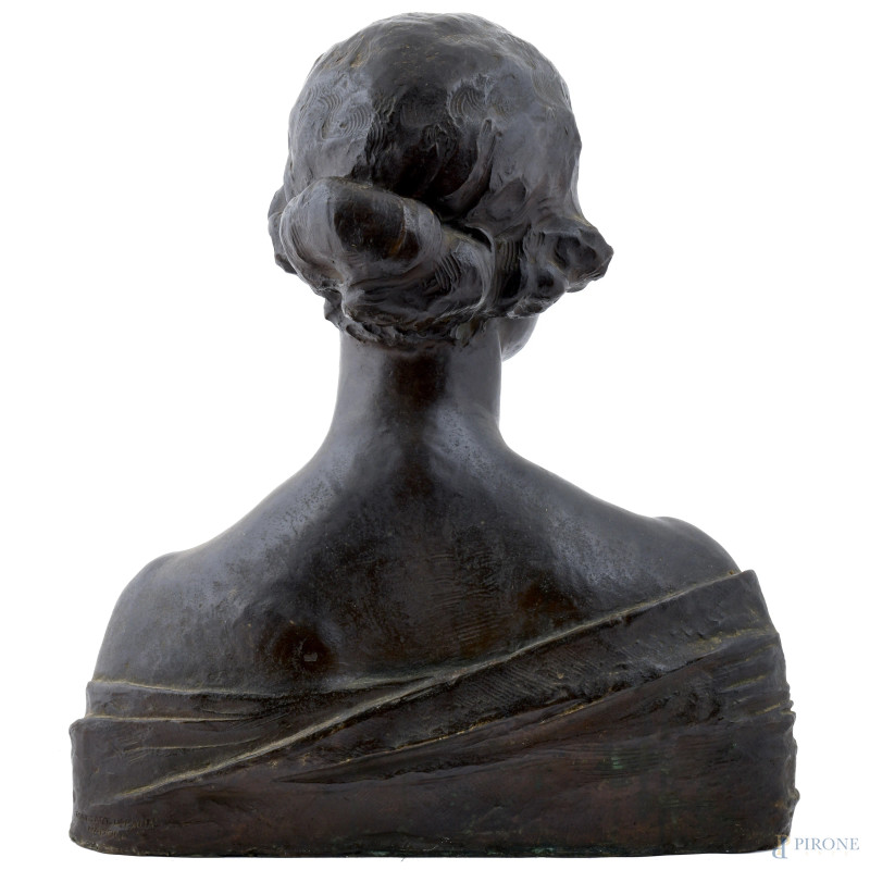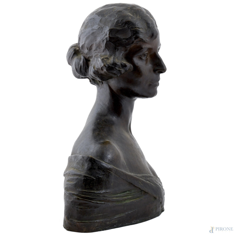 Torquato Tamagnini (1886 - 1965) , Busto di donna, scultura in bronzo, altezza cm 50, firmato e iscritto "Fonderia d'Arte Laganà Napoli"