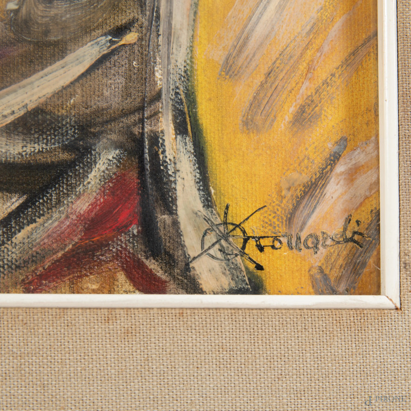 Tre figure femminili, XX secolo, olio su tela, cm 50x70, firmato in basso a destra, entro cornice