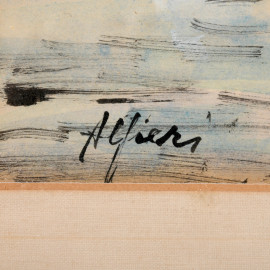 Veduta di scogliera, XX secolo, tecnica mista su carta, cm 37x51 compreso passepartout, firmato in basso a sinistra, entro cornice