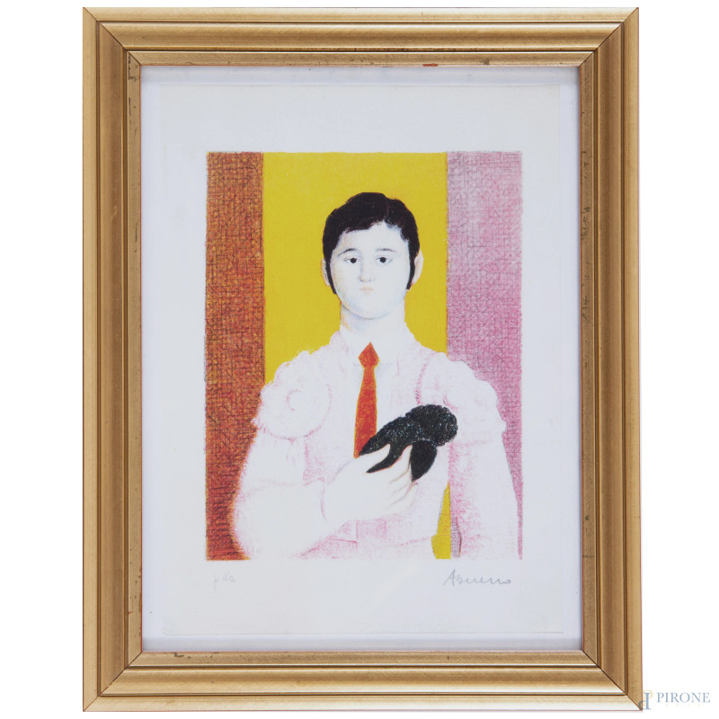 Antonio Bueno, Torero, litografia a colori, P.A., cm 36x27, firmato in basso a destra, entro cornice